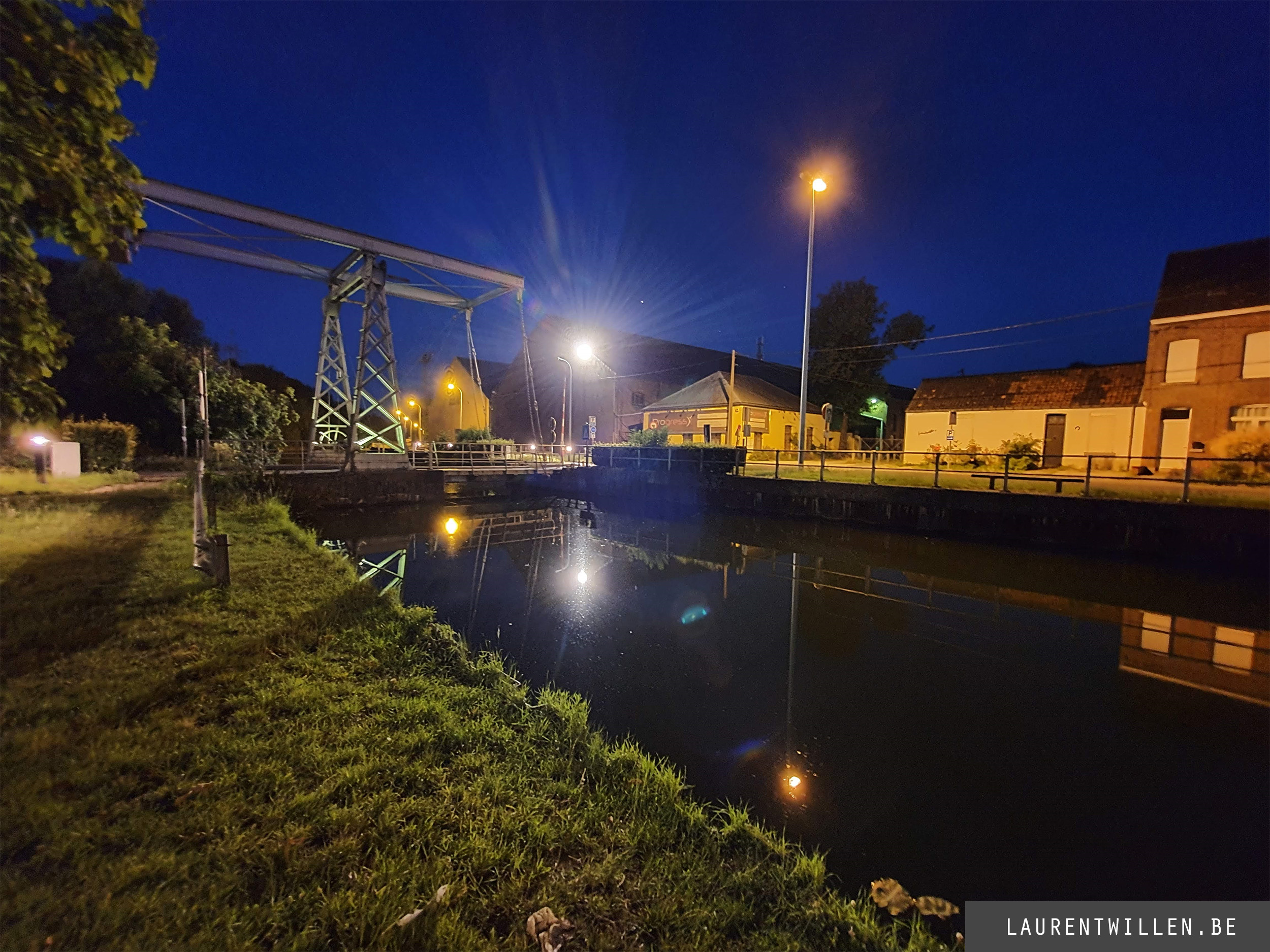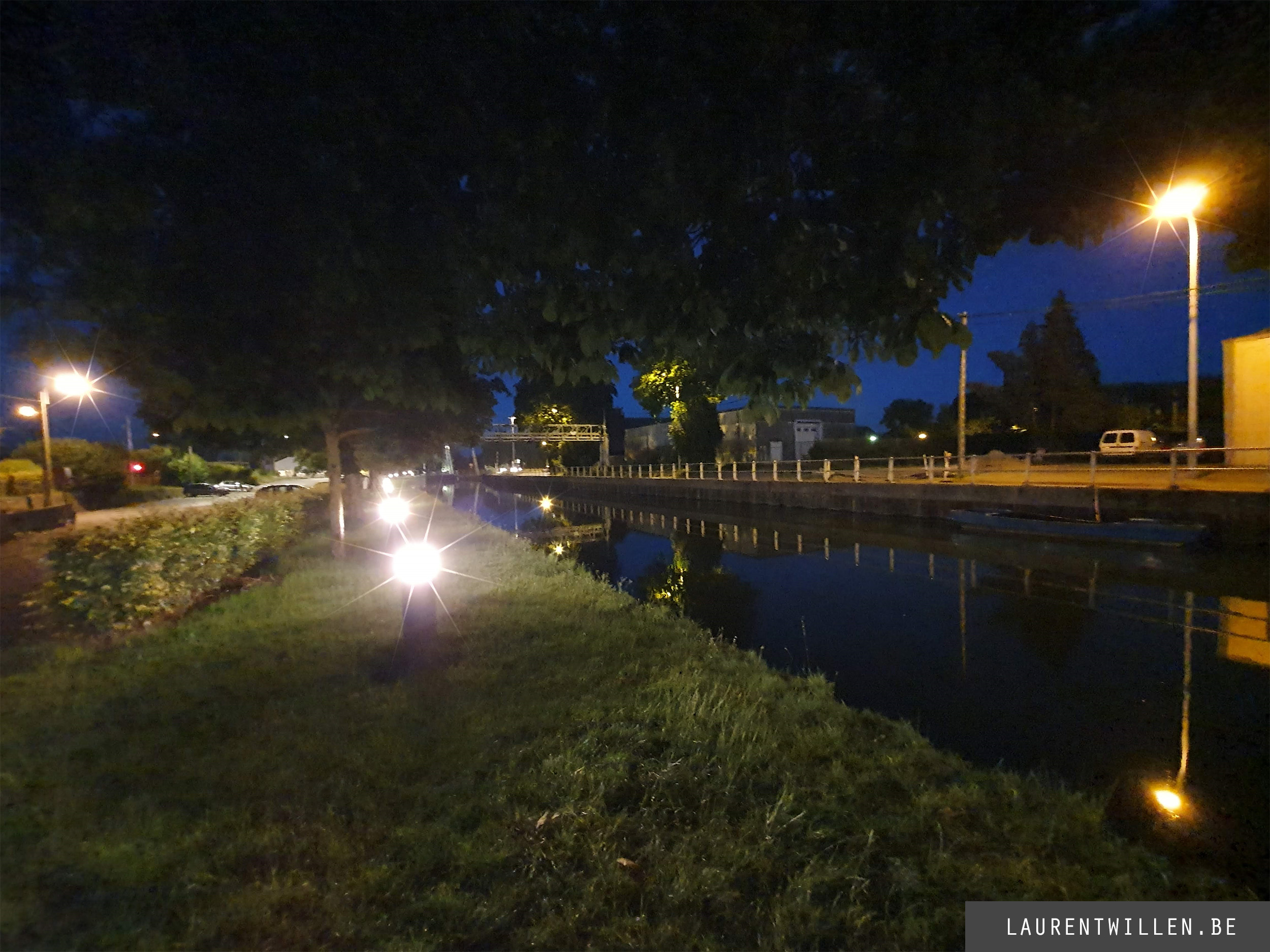 Pour tester les photos en mode nuit je me suis rendu en ville et plus particulièrement le long de la rivière car on y retrouve pas mal d'éléments intéressants pour tester la photo nocturne. Comme le Samsung dispose d'un triple capteur et d'un mode nuit, j'ai testé les capteurs en mode automatique et en mode nuit.