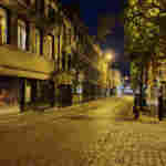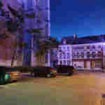 Le capteur ultra grand angle permet d'obtenir un angle de vision énorme mais la nuit, les défauts sont plus visibles. Au centre l'image est nette mais cette netteté disparait assez rapidement pour tomber dans une zone de flou sur les bords. On voit également assez bien la déformation des objets comme par exemple l'éclairage public sur la droite de la photo, les lampes sont artificiellement allongées.