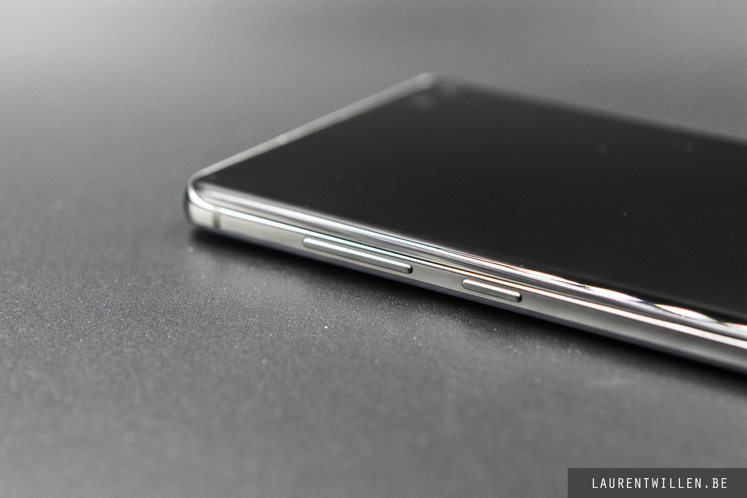 Le contour du téléphone est métallique, cela lui donne un cachet plus premium et donne une impression de solidité. La disposition des boutons est par contre déroutante. Je n'ai pas eu de Samsung depuis longtemps, je ne sais donc pas si ce choix est propre à ce modèle mais les boutons de volume sont à gauche et en dessous des boutons de volume Samsung a placé un bouton pour accéder à Bixby son assistant. Si vous n'avez pas activé Bixby, vous allez le croiser régulièrement car le bouton se trouve à un endroit où on pose habituellement ses doigts. Du côté droit on retrouve le bouton d'allumage, le bouton se trouve assez haut sur le téléphone, c'est sans doute un choix esthétique mais à l'usage c'est un peu perturbant quand on a eu l'habitude d'un bouton d'allumage au milieu.