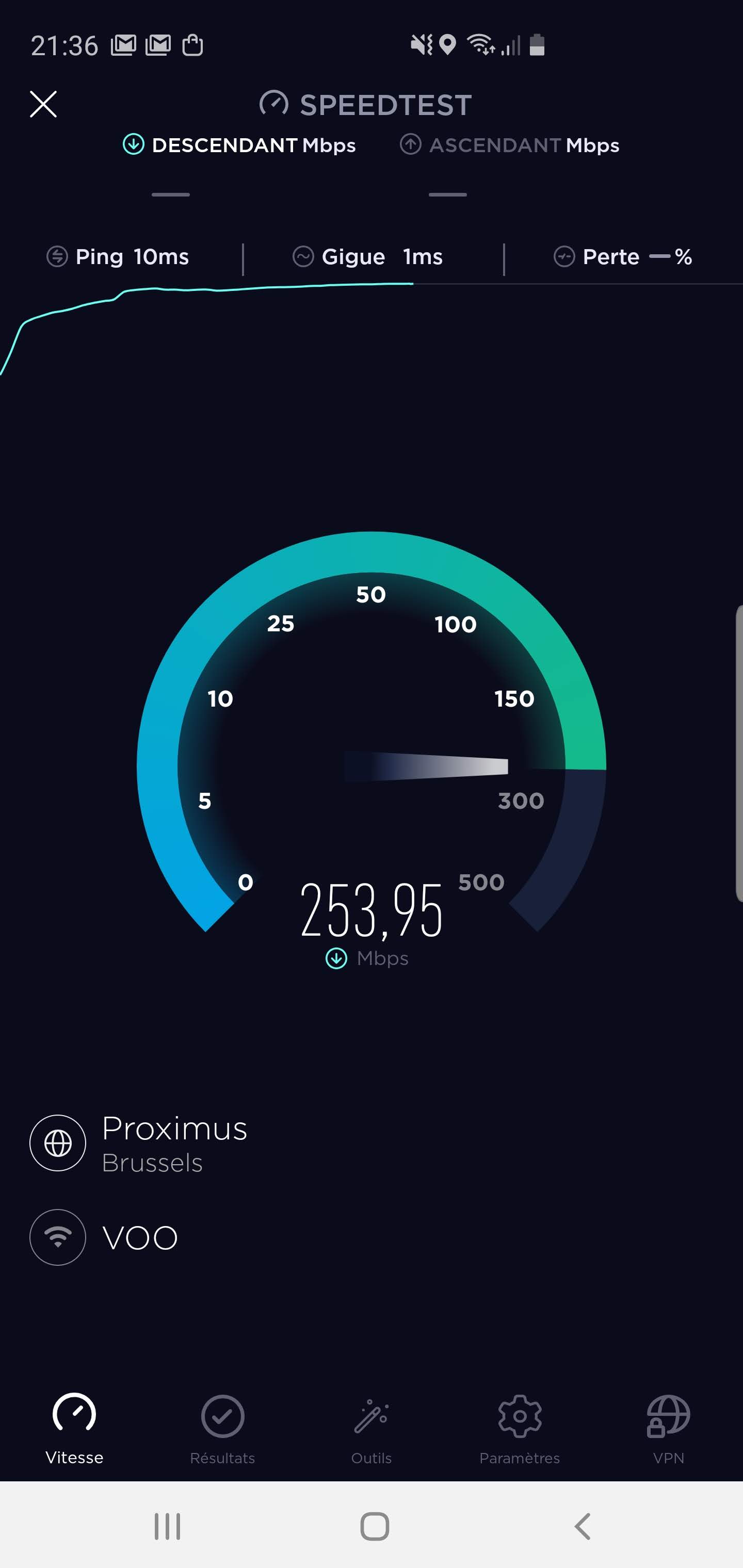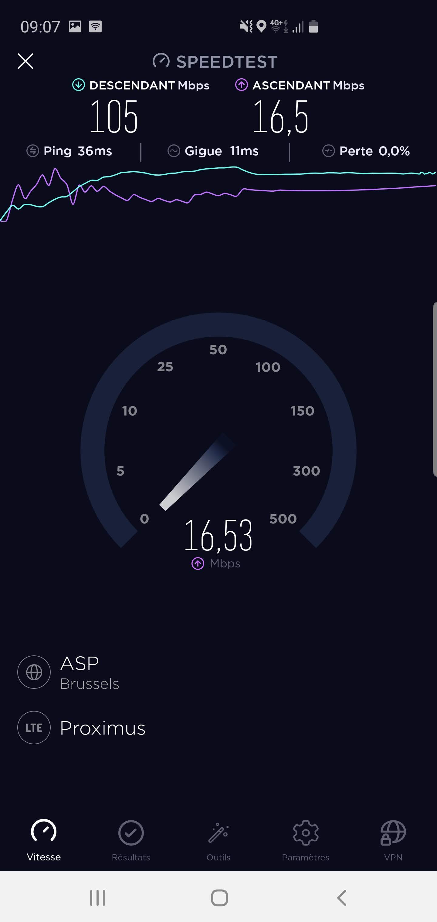 Le résultat de ce test démontre que contrairement à mes attentes le Samsung Galaxy S10+ n'est pas dans les meilleurs téléphones au niveau réseau. Le résultat n'est pas mauvais pour autant, il est juste dans la moyenne de ce que j'ai pu mesurer jusqu'à présent.