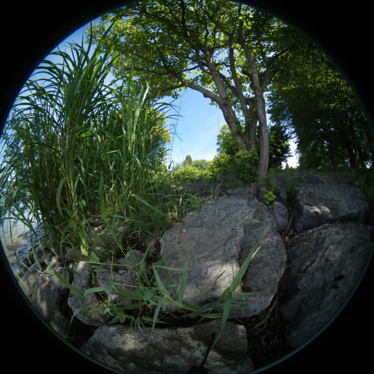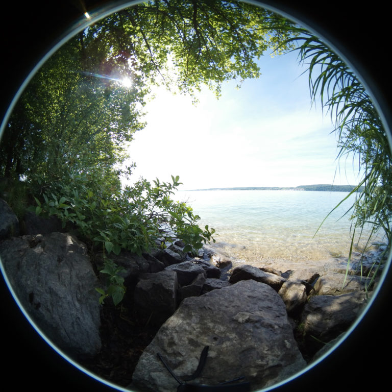 Voici un exemple de ce que la caméra produit avant assemblage. J'ai pris une photo au bord du lac de Constance en Bavière, j'ai choisi une photo avec beaucoup de contrastes entre des lumières très fortes et de l'ombre, la caméra ne s'en sort pas trop mal mais on voit clairement les bords de chaque lentilles.