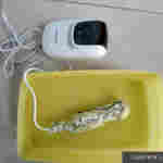 Pour le deuxième test, j'ai pris un récipient d'eau que j'ai rempli d'eau chaude. J'ai pris un mouchoir, frotté de la confiture de fraise dessus, ajouté du savon standard pour machine à laver. J'ai plongé le Sonic Soak dans l'eau, il a commencé à bourdonner, je pouvais voir un mouvement dans l'eau, le savon se déplaçait autour de l'appareil. J'ai réglé le compteur à 720 secondes et j'ai attendu patiemment jusqu'à la fin. J'ai déplacé le mouchoir quelques fois pendant que l'appareil fonctionnait.