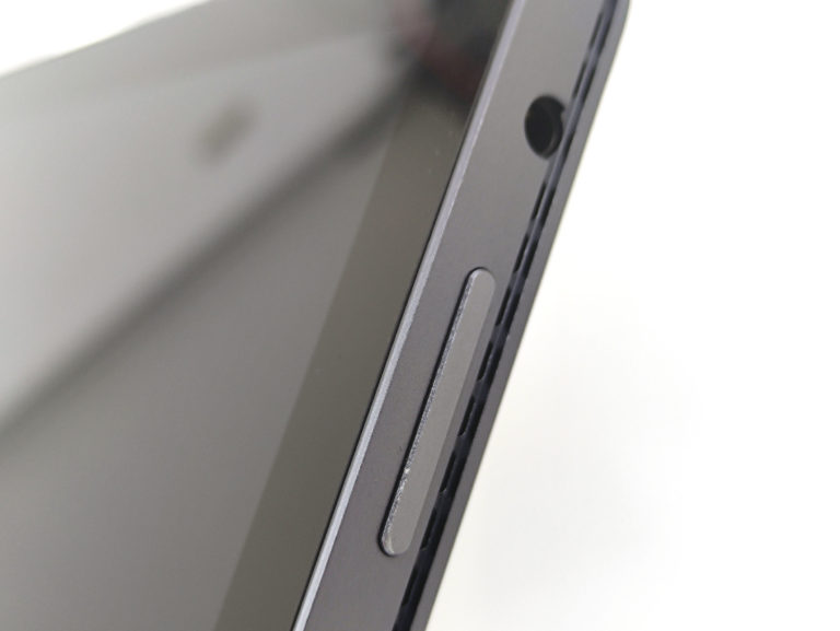 Au dessus on retrouve un énorme espace de ventilation pour dissiper la chaleur produite par le CPU et GPU. Le bouton d'allumage se trouve sur la tranche supérieure à droite et contient un capteur d'empreinte pour déverouiller l'ordinateur comme ce que l'on peut trouver sur la plupart des smartphones.