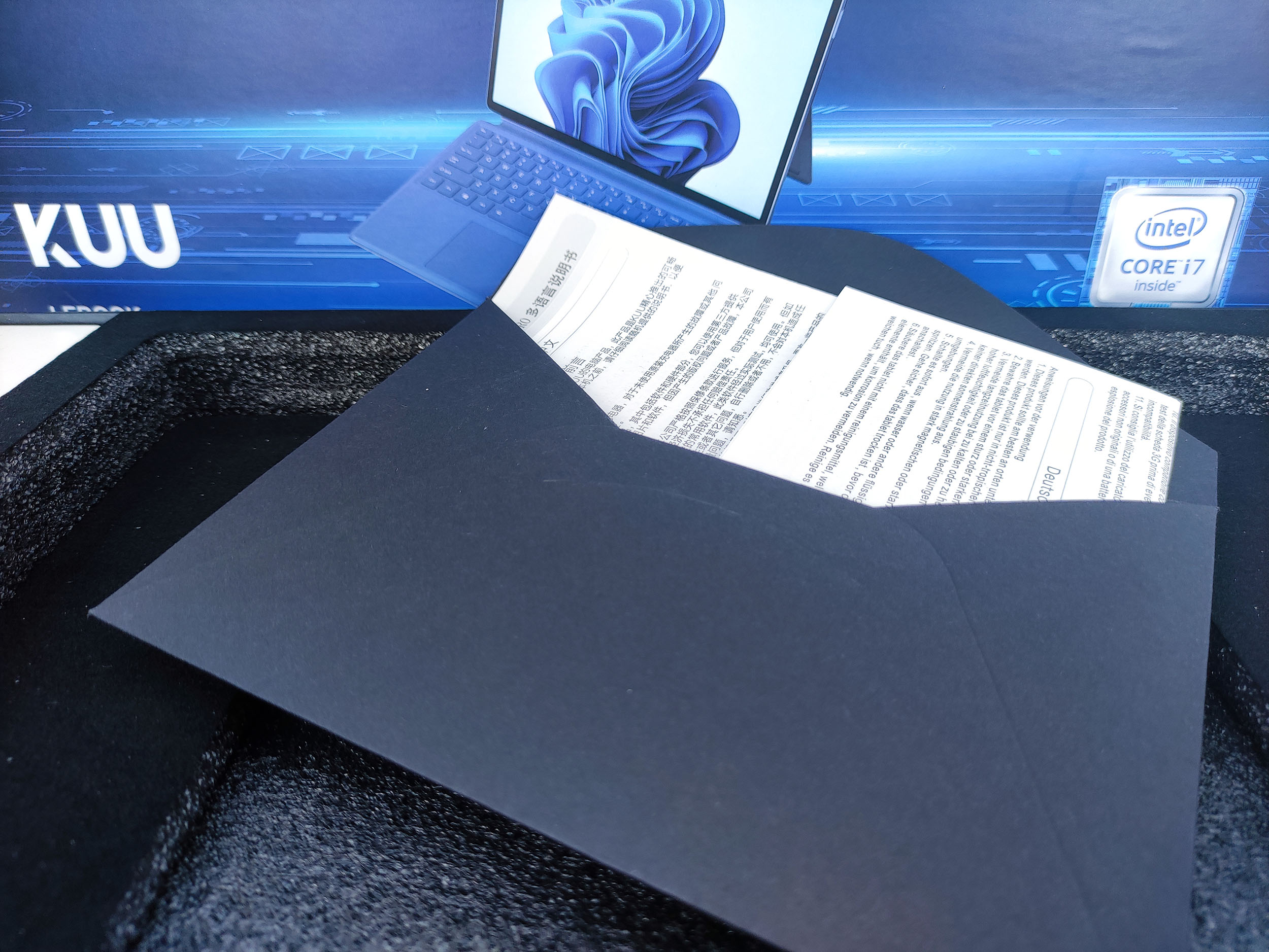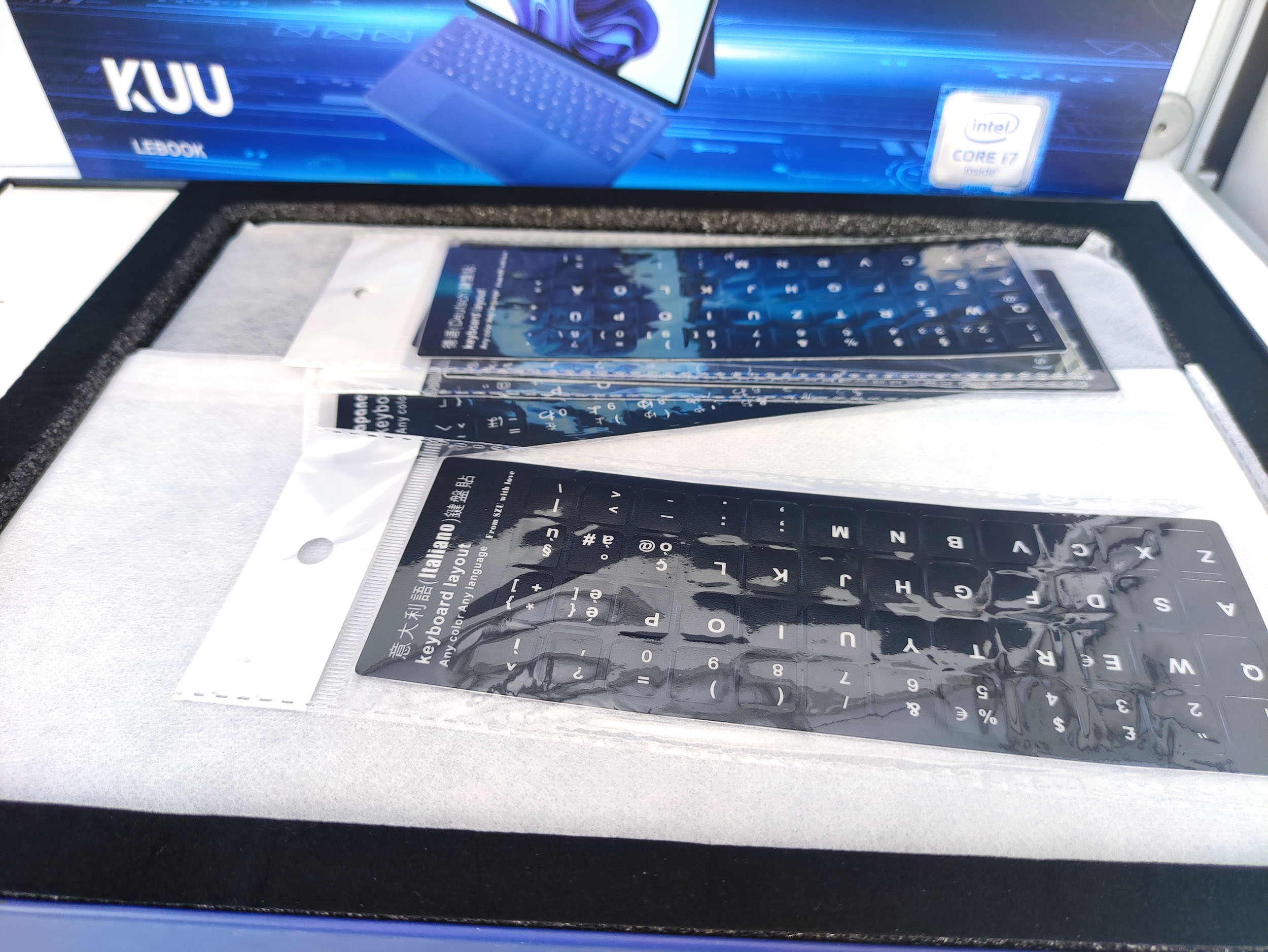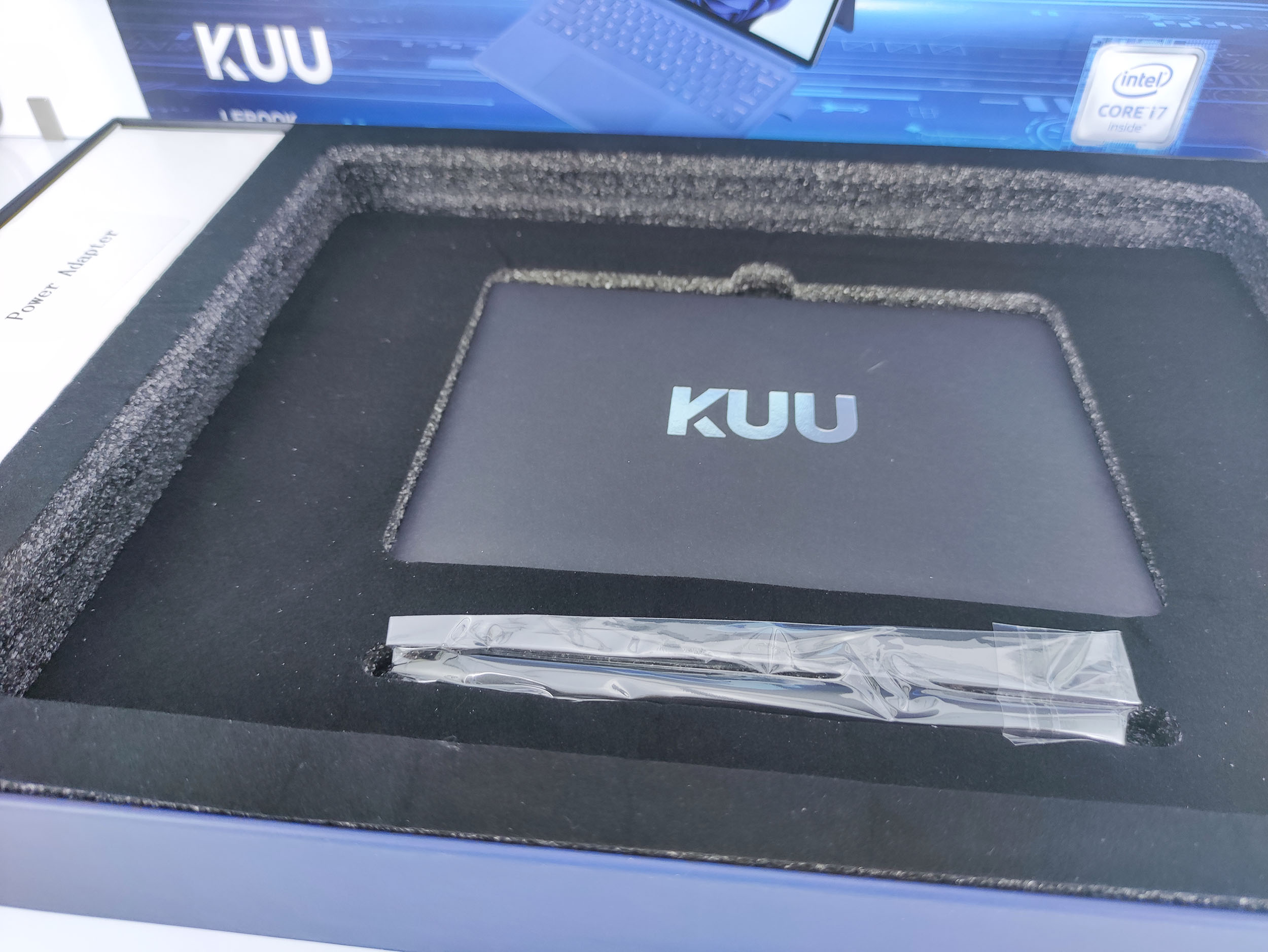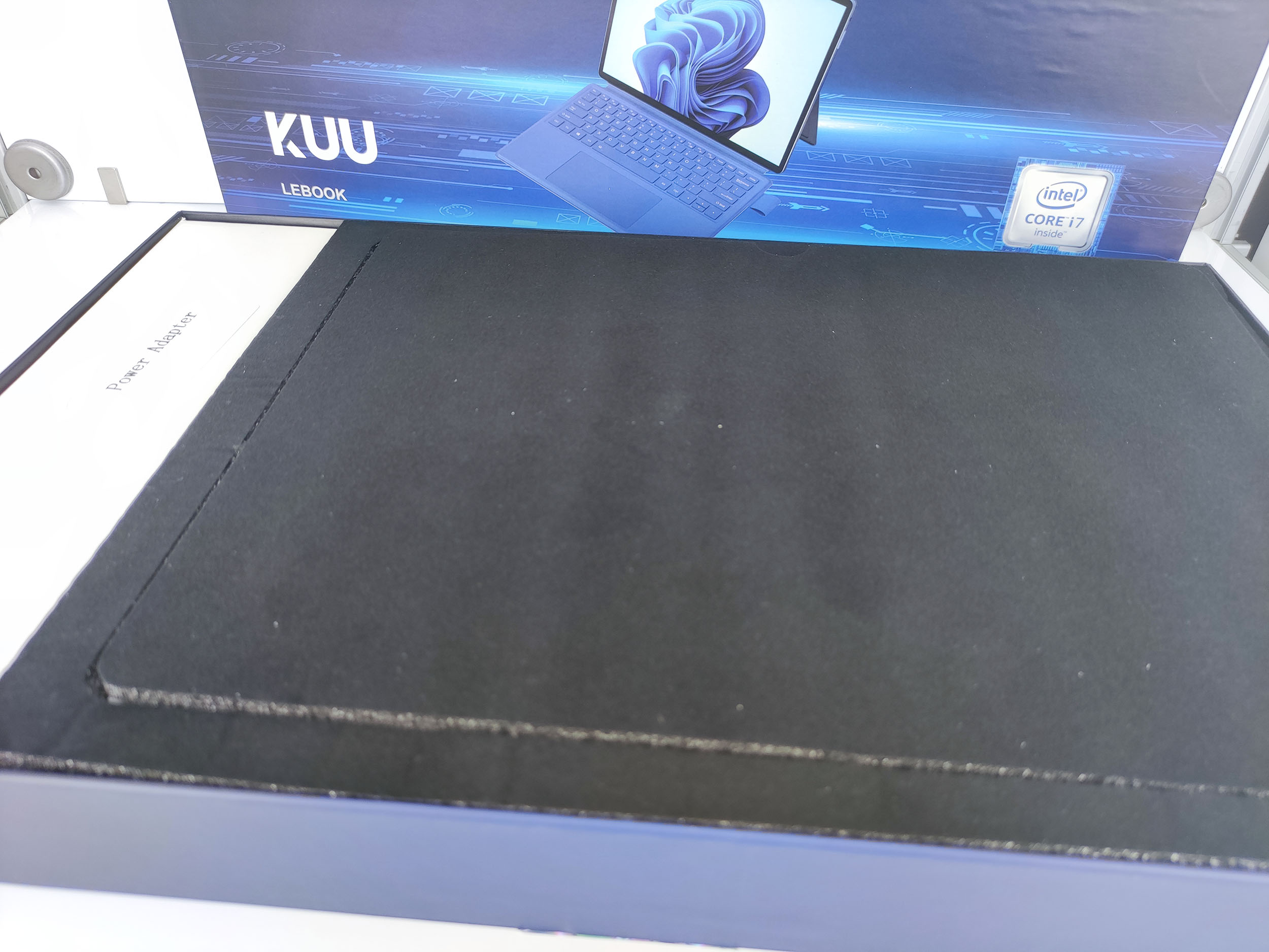 La boite contient le pc, un stylet, un clavier détachable avec un touchpad, un adaptateur secteur, un hub usb contenant 4 ports USB-A et connecté par un port USB-C, un cable USB-C pour la recharge et un 5 sets d'autocollants pour le clavier (configuration italienne, grecque, français, allemande et espagnole) car le clavier physique est un qwerty. Le KUU Lebook Pro est soigneusement emballé dans un emballage de mousse noire, le produit est bien protégé contre les chocs. Ce produit est plutôt à classer dans le haut de gamme de chez KUU et cette première impression sur l'emballage et son contenu est positive.