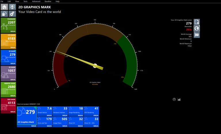 Avec 6183 points, vous avez un ordinateur suffisamment puissant pour supporter toutes les taches quotidiennes de bureautique, vous pouvez également utiliser des logiciels plus gourmands comme Photoshop mais la vitesse de traitement sera évidemment plus lente. Les jeux qui offrent la possibilité de régler le niveau de graphisme peuvent également être envisagés.