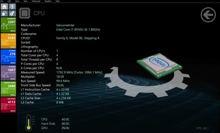 Le KUU Lebook Pro est équipé d'un processeur Intel Core i7-8550U, à priori un Core i7 c'est plutôt le haut de gamme chez Intel et cette gamme rime souvent avec performance. Il faut cependant relativiser car ce processeur existe depuis 2017, ce n'est donc pas un processeur de dernière génération et le niveau de performance ne sera clairement pas équivalent à un Core i7 récent. Cela ne veut pas pour autant dire que ce pc avancera aussi vite qu'une brouette chargée, je vais revenir sur les performances plus loin dans cet article.