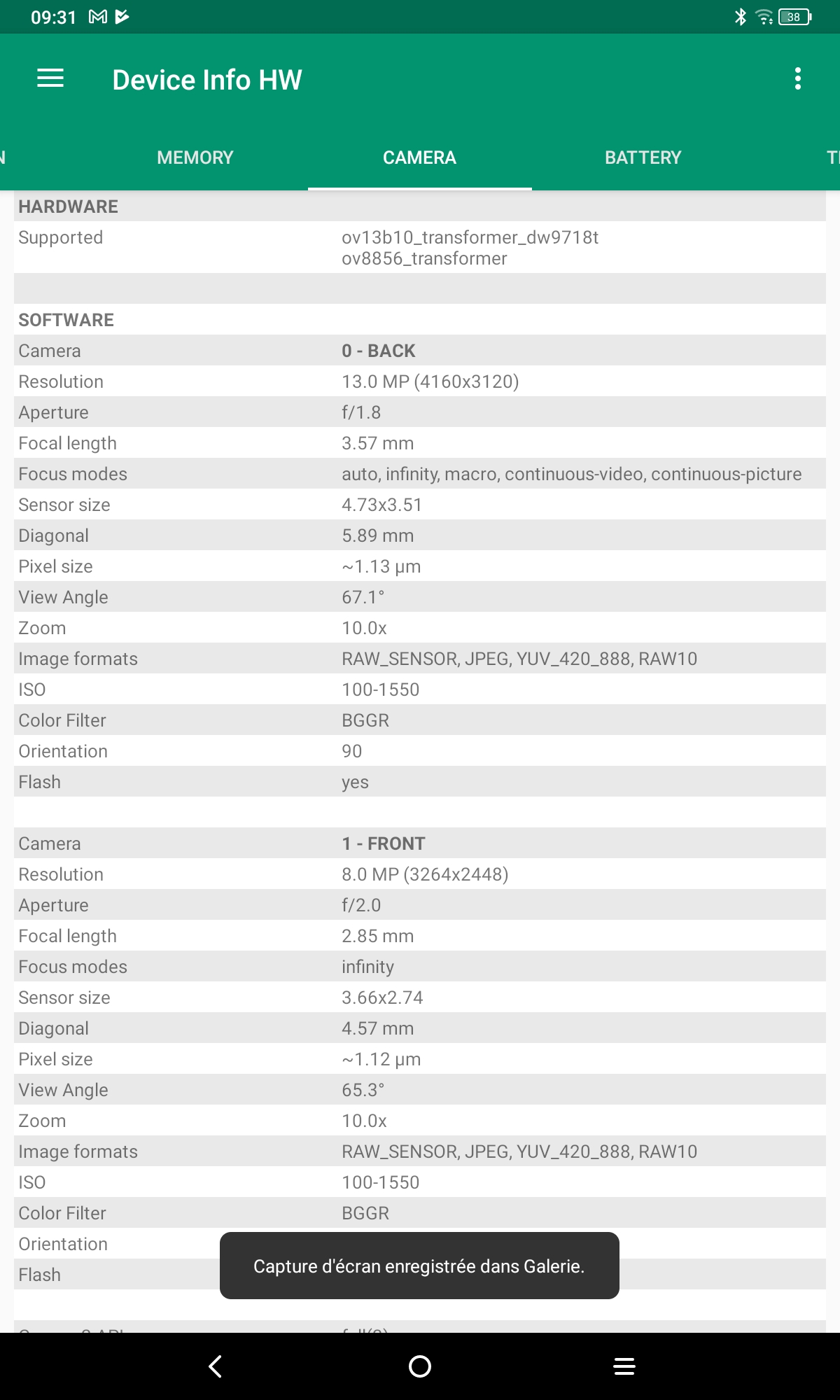 La version que j'ai testée avec 6Gb de RAM et 256 Gb de stockage, c'est un stockage plus généreux que la moyenne. La mémoire est du type LPDDR4X comme sur beaucoup de smartphones. Ce n'est pas le type de mémoire le plus rapide mais dans cette gamme de prix, c'est tout à fait normal. La capacité de batterie est également généreuse avec 8000 mAh. Vous retrouverez le reste des caractéristiques techniques dans les captures d'écran suivantes.