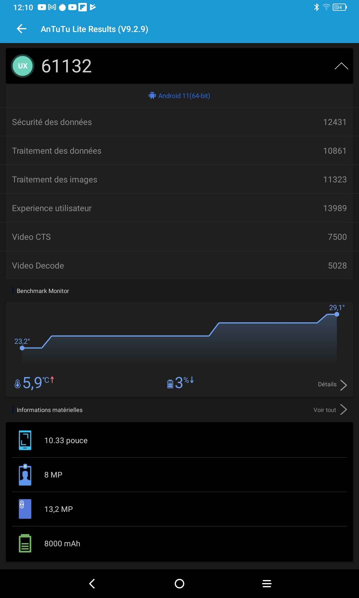 [battery] La TCL 10 Pro a une énorme batterie de 8000 mAh qui devrait vous offrir une autonomie assez importante. J'ai essayé d'isoler la consommation de chaque composants pour comprendre si la tablette avait une bonne efficacité énergétique.Processeur