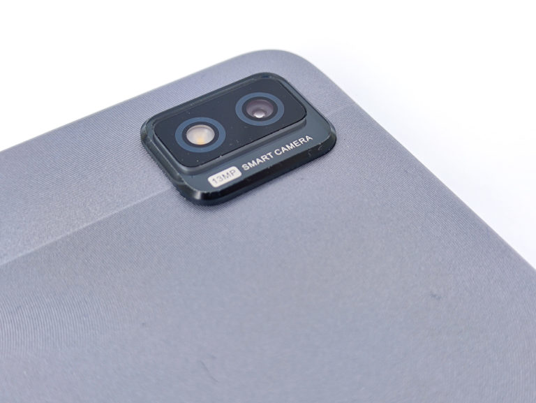 Le dos est recouvert d'une surface à effet métallique et son revêtement est texturé, il n'est pas complètement lisse. Ce type de revêtement offre une bonne prise en main, la tablette ne glisse pas des mains et vous ne passerez pas votre temps à nettoyer vos traces de doigts car elles sont moins visibles que sur les surfaces uniformes et lisses.