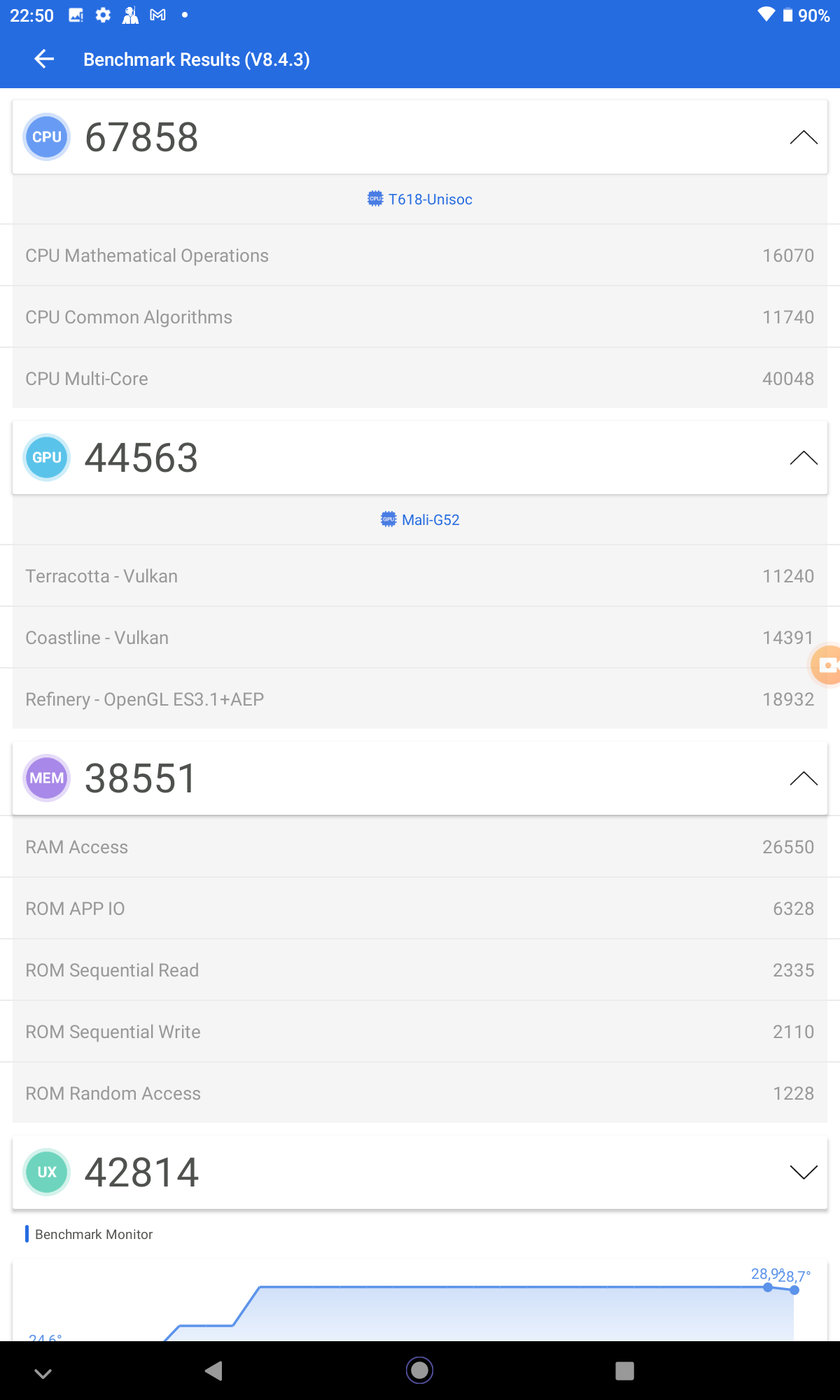Comme je l'écrivais dans le paragraphe précédent, cette tablette n'utilise pas un CPU de chez Mediatek ou Qualcomm. La Teclast T40 Plus s'appuie sur un CPU Unisoc T618 qui en terme de performance se situe au niveau d'un Qualcomm Snapdragon 439 ou un Mediatek Helio G35, ce n'est donc pas un CPU haute performance mais je détaillerais la performance dans le paragraphe suivant.