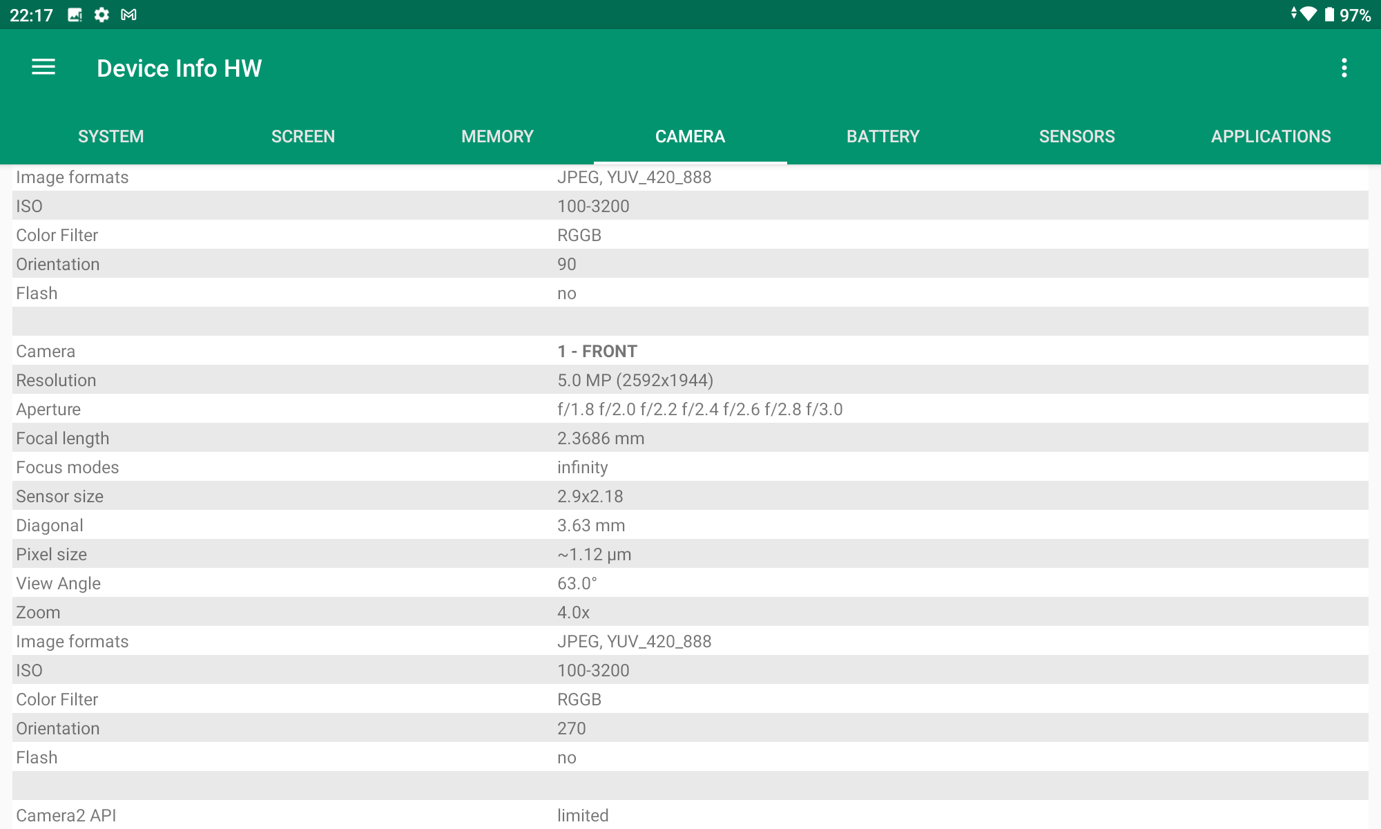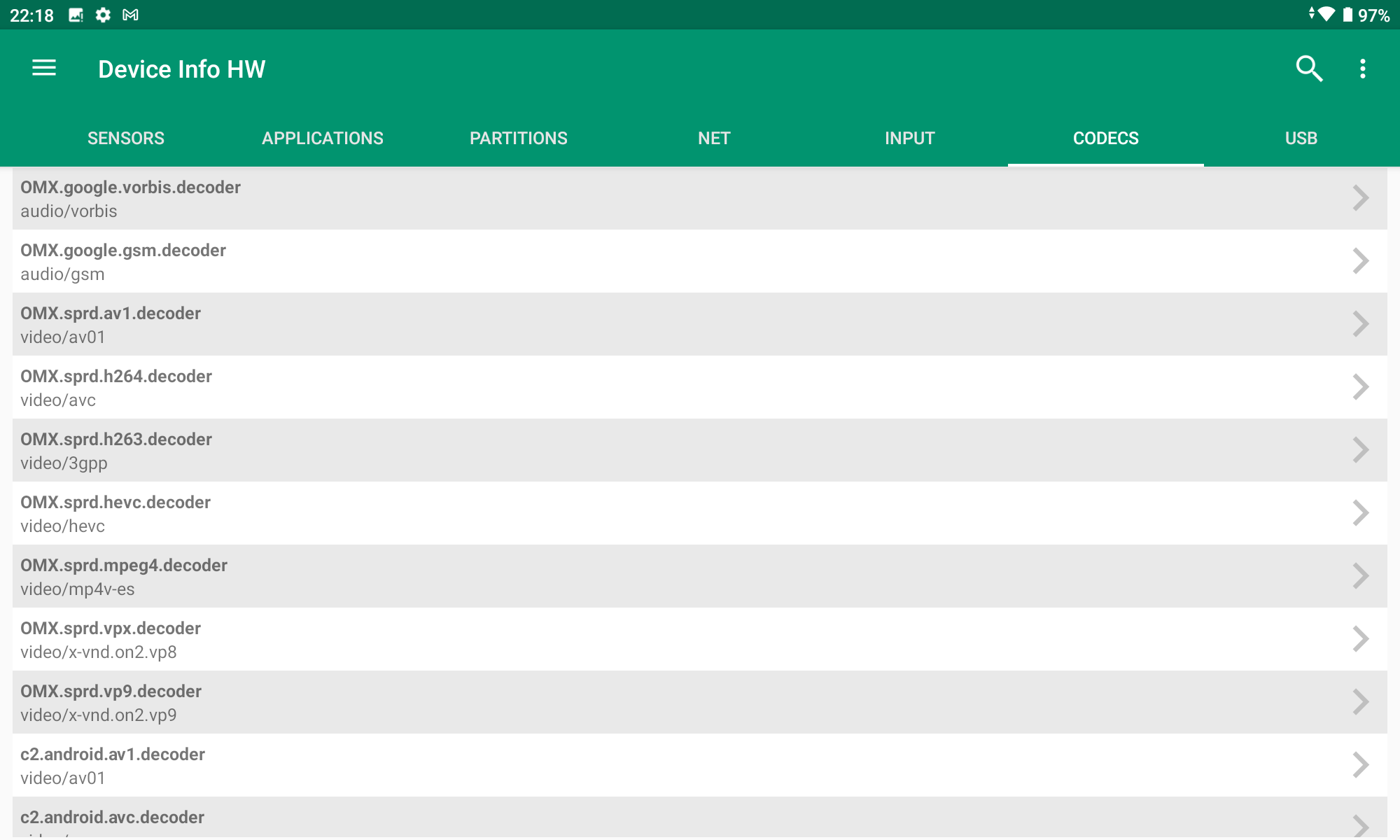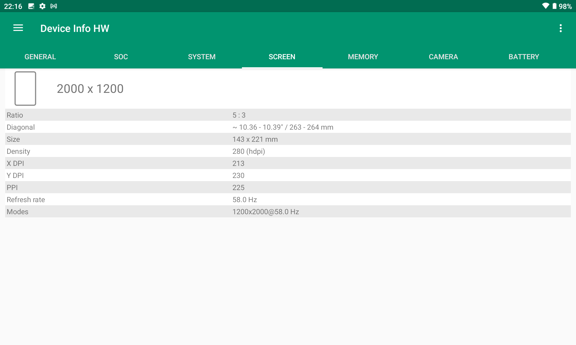 Les informations ci-dessous proviennent de l'application Device Info HW. L'application fournit des informations techniques détaillées sur le téléphone testé.Je ne teste pas beaucoup de tablettes et les composants de cette Teclast semble dans la grande majorité être spécifiques à cette tablette. La comparaison avec d'autres tablettes ou d'autres smartphones est donc plus compliquée. Le CPU est d'un type que je n'ai pas encore testé et de ça découlent d'autres choix comme notamment le chipset GPS ou le modem 4G qui proviennent de constructeurs que je ne connais pas. Pour les smartphones, la grande majorité des composants sont liés à Qualcomm ou Mediatek mais ici on démarre sur un Unisoc, seul le GPU est une veille connaissance (Mali G52).