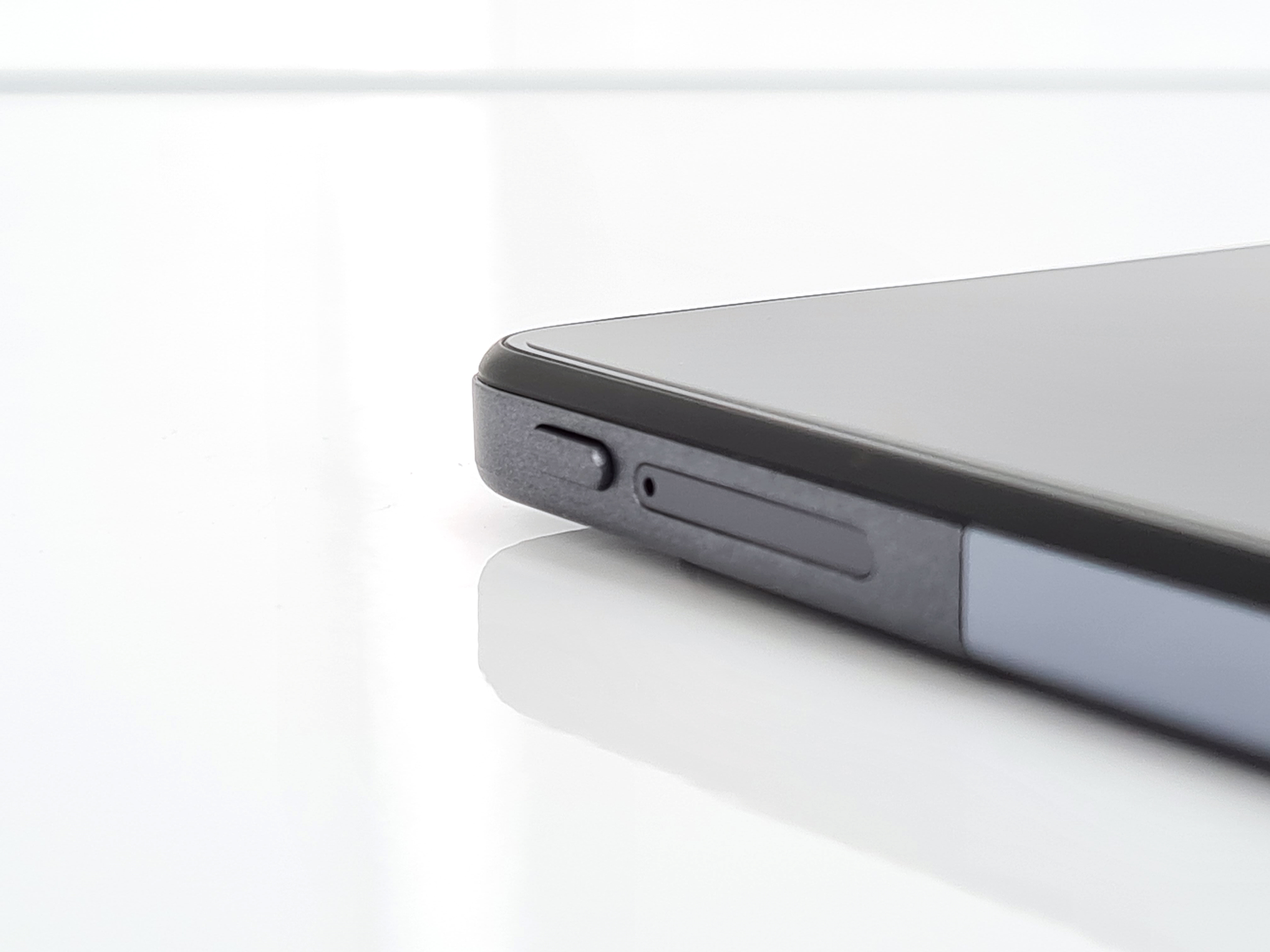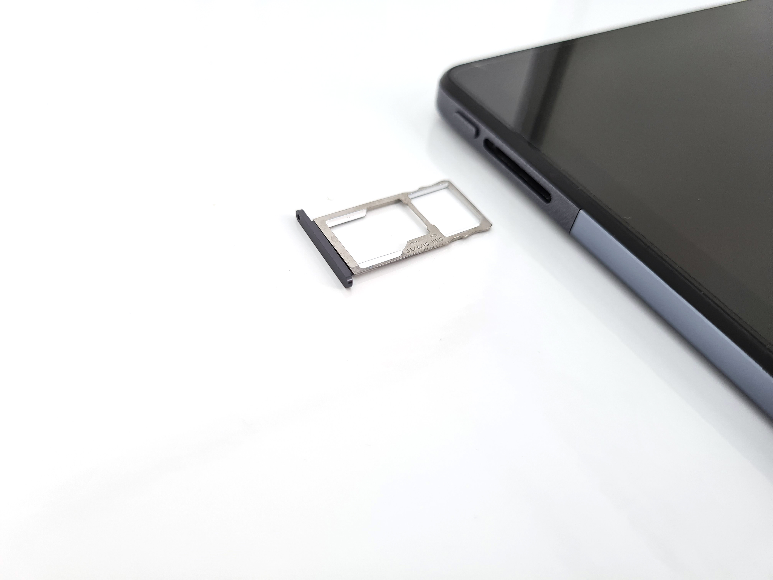 La Teclast est conçue pour être utilisée en mode paysage, le capteur photo se trouve au milieu de la tranche horizontale. Si je prends la tablette dans ce sens, je retrouve le volume en haut à gauche. Le tiroir sim, le bouton d'allumage et le port USB se retrouvent sur la tranche gauche de la tablette. Il n'y a pas d'autres boutons sur les autres côtés de la tablette. Le tiroir sim peut contenir une carte sim et une carte mémoire.