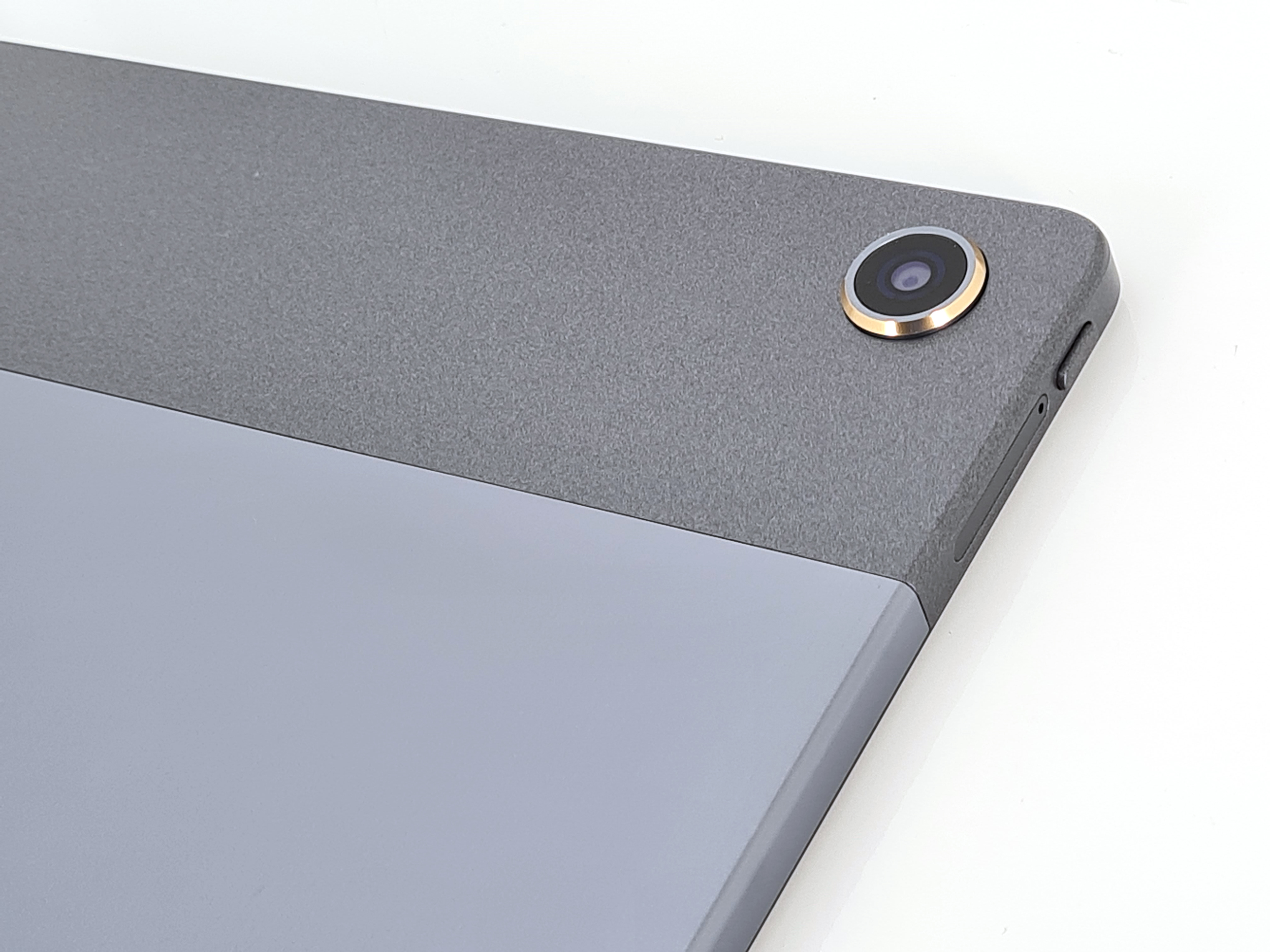La Teclast T40 Plus ne semble pas avoir de revendications particulières au niveau de la finition, la Chuwi voulait clairement attaquer le haut de gamme. Cela ne veut pas dire que la Teclast n'a pas de bonne finition, elle offre cependant un niveau de finition plus sobre. L'arrière est recouvert d'une surface métallique à 2 tons, la surface plus foncée est sans doute faite de plastique mais elle imite assez bien le métal au toucher.