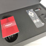La boite contient le projecteur, un cable d'alimentation, un manuel, une télécommande, deux piles AAA et un dongle. Ce dernier est une curiosité, c'est la première fois que je teste un projecteur qui a décidé d'externaliser sa partie intelligence. Ce dongle se branche à l'arrière du projecteur lui permet de tourner sous Android.