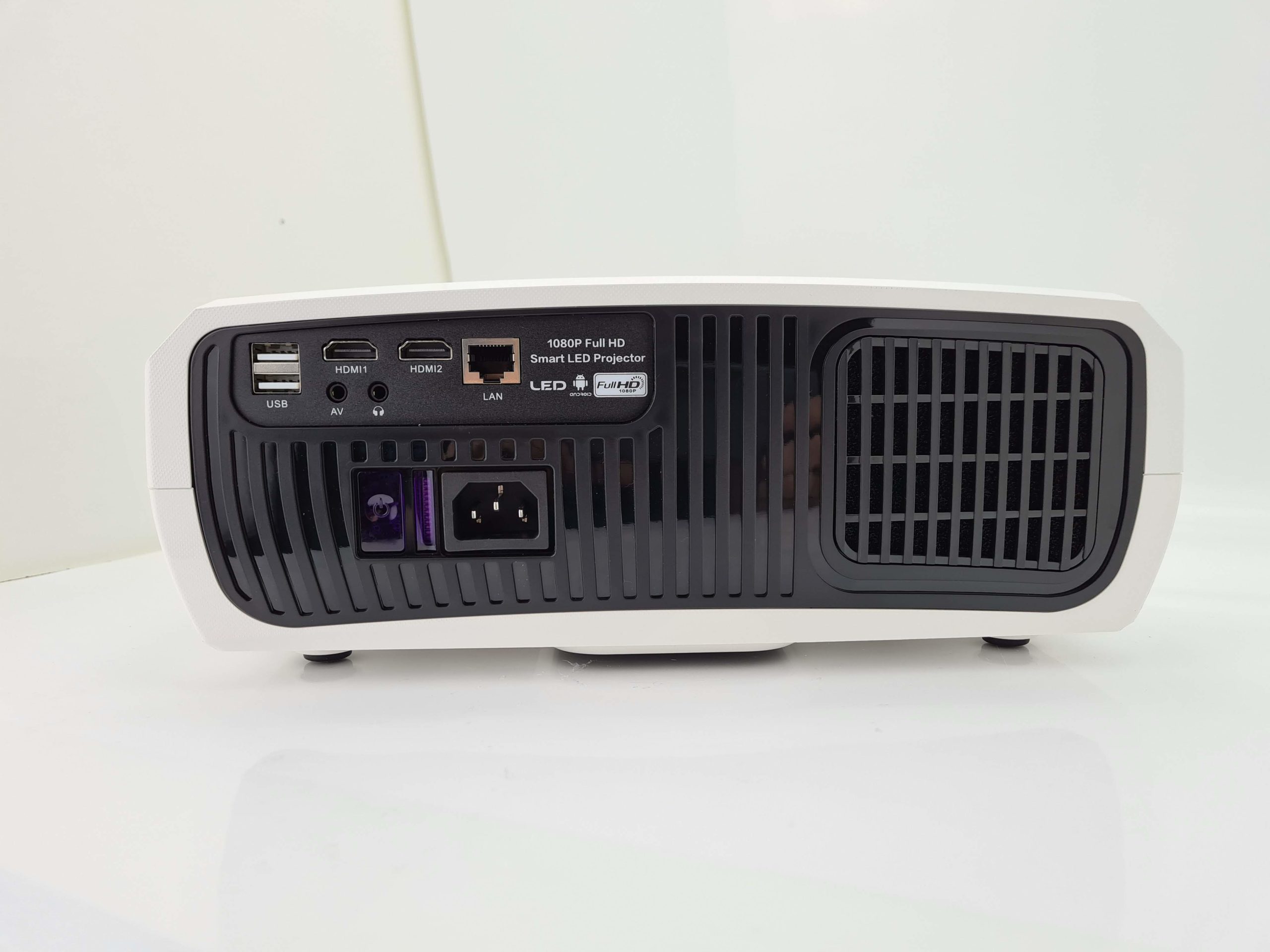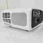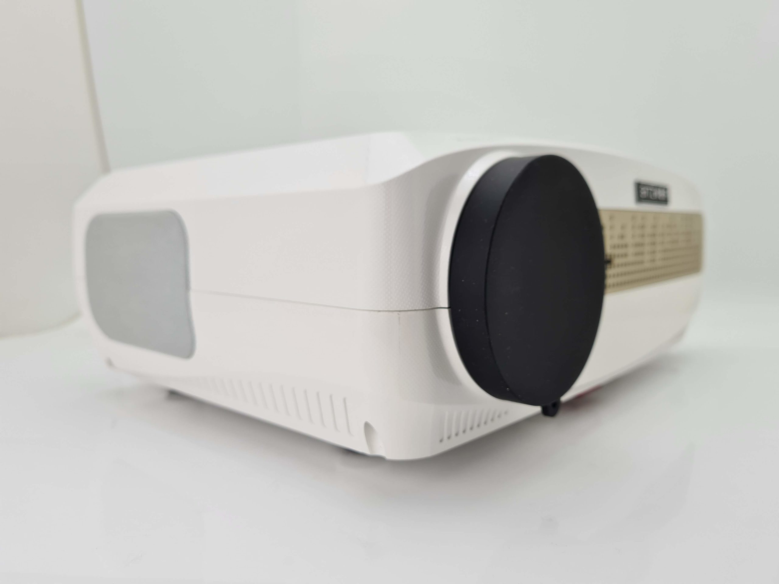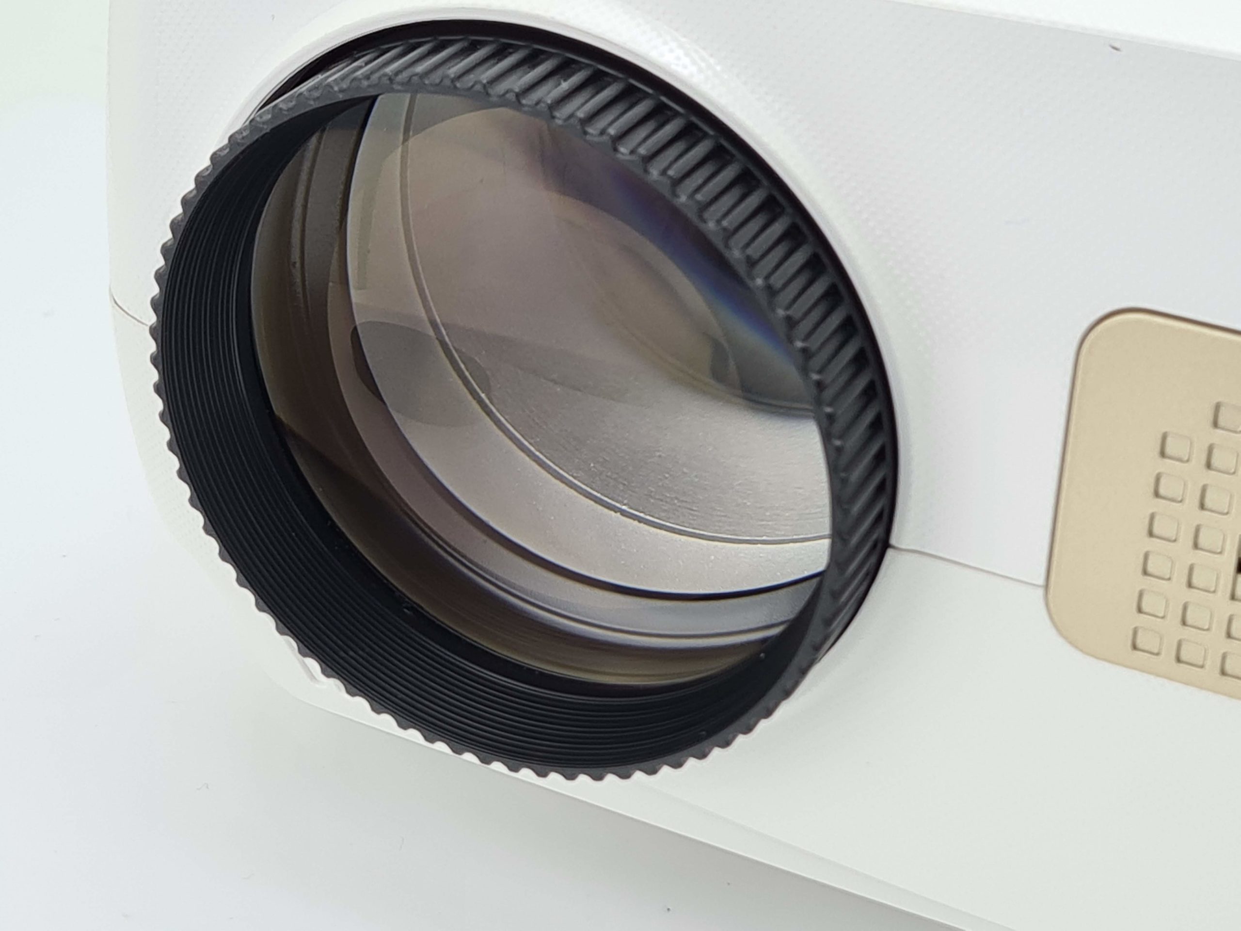 Le Blitzwolf VP9 est assez massif et il est majoritairement composé de plastique. Il existe en deux coloris, j'ai choisi le blanc mais il existe aussi en noir. La façade avant est dominée par l'énorme lentille de projection, Blitzwolf a visiblement opté pour un système à miroir, c'est la première fois que je teste un projecteur de ce type. Il y a aussi une grille brune sur la façade avant, je la trouve un peu bizarre et je ne sais pas si elle a pour but de casser la monotonie du projecteur mais je ne trouve pas ça très esthétique.