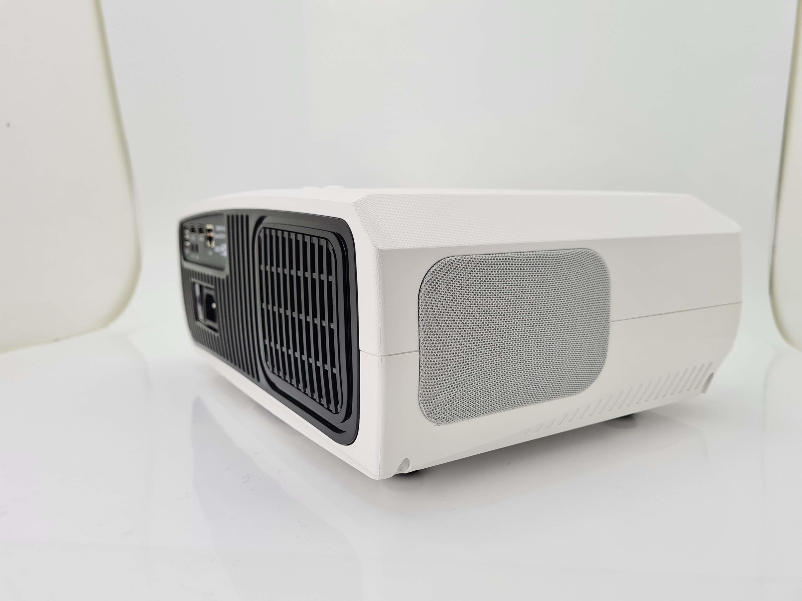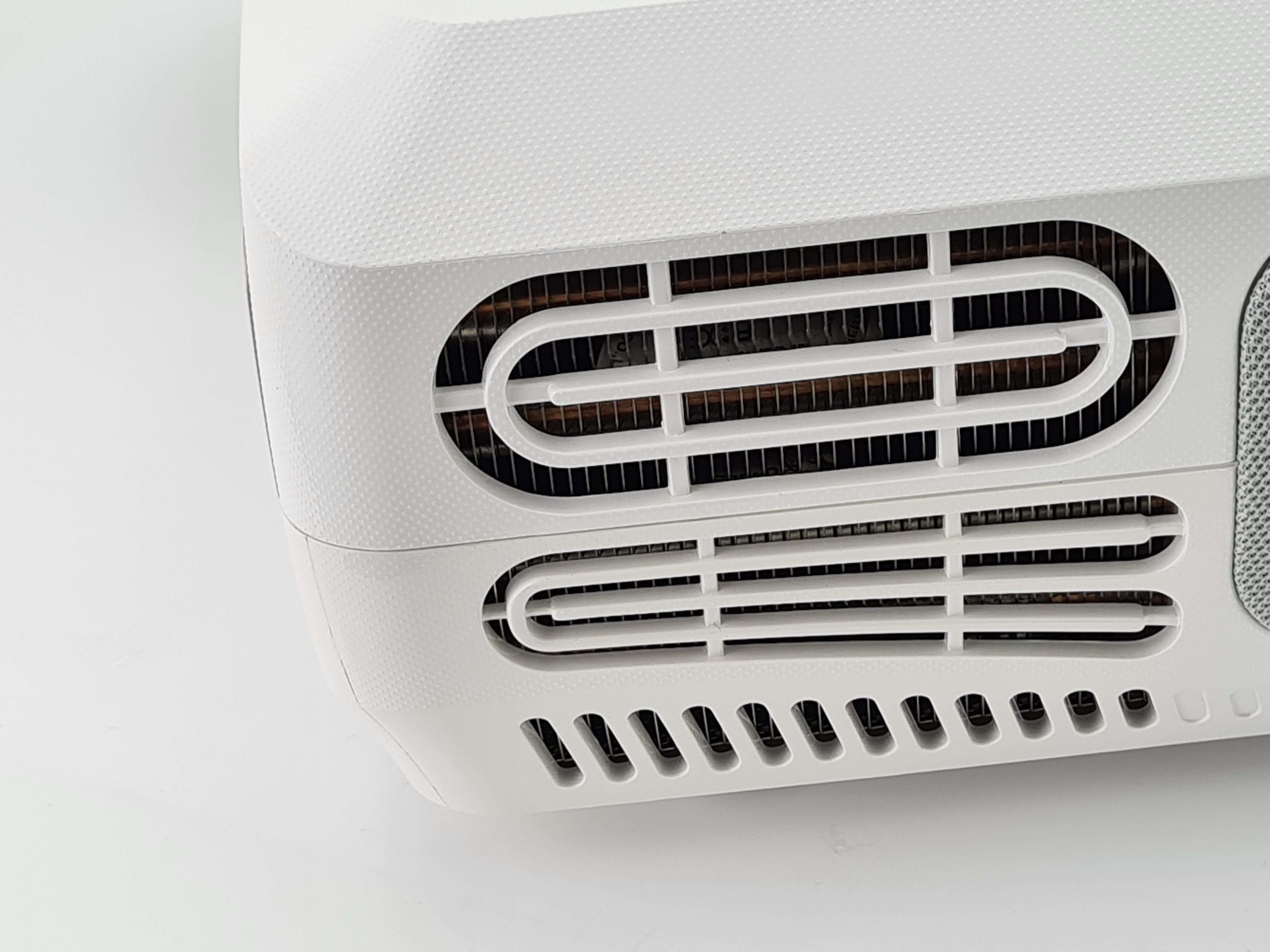 Sur les côtés on retrouve les haut-parleurs et une sortie de ventilation, l'ensemble est très bien intégré dans le boitier du projecteur