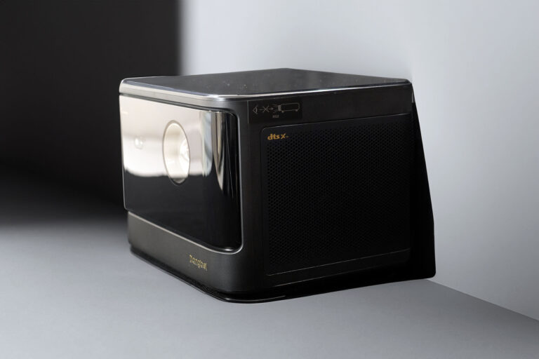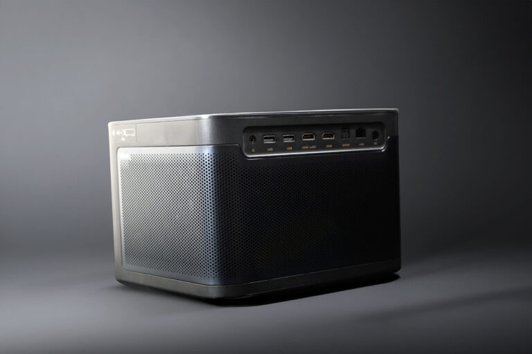 Ce projecteur suit une tendance de projecteurs au format presque cubique qui avait été initiée à l'époque avec XGIMI et qui par la suite a été copiée et recopiée par de nombreuses autres marques. La particularité de ce modèle, c'est qu'il peut être monté sur un support à bascule comme le JMGO N1 Ultra.
