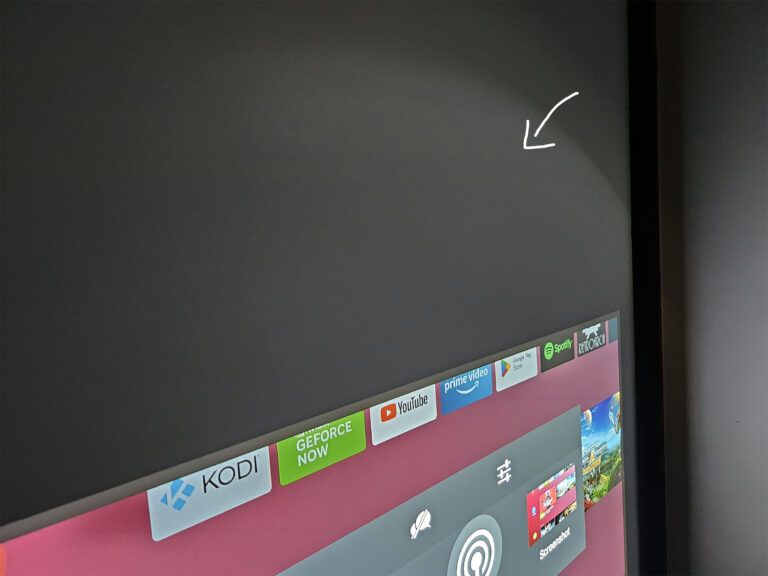 J'ai remarqué un halo de lumière autour de mon écran comme vous pouvez le constater sur cette photo. Il s'agit d'une réflexion interne au bloc optique, elle est déjà visible à proximité du projecteur si vous le posez sur un support. Ce n'est pas excessivement gênant mais ce cercle de lumière est visible.