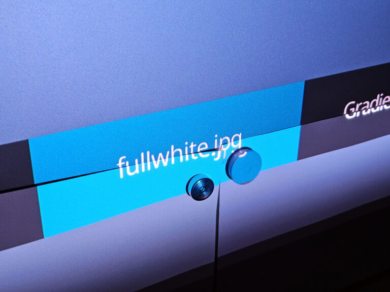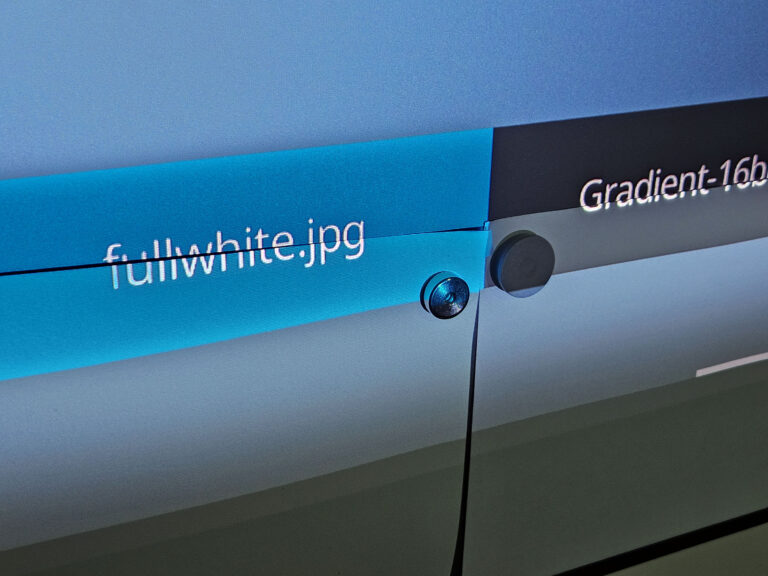 La perte de luminance en comparaison avec la surface neutre est ensuite stable. Ceci montre qu'un projecteur classique doit être relativement lumineux pour être utilisé avec un écran comme celui-ci. Oubliez donc les projecteurs comme le Dangbei Freedo ou le XGIMI Mogo 3 Pro, ils sont trop peu lumineux pour être utilisé avec un tel écran. J'ajouterais que d'un point de vue budget, ça ne fait pas beaucoup de sens non plus vu que l'écran coute plus cher que le projecteur.