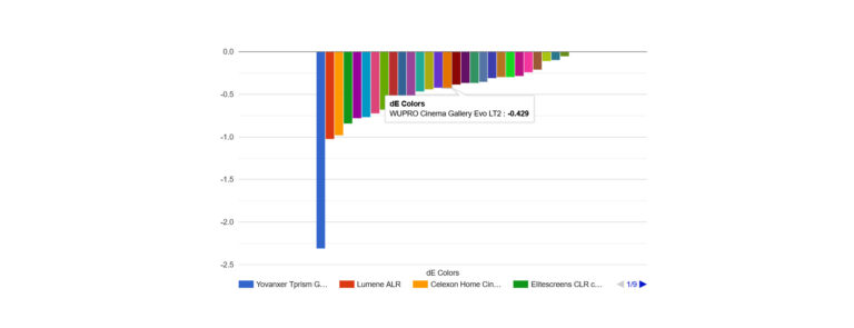 Le WUPRO Cinema Gallery Evo LT2 parvient à restituer les couleurs assez fidèlement, la déviation des couleurs est très minime et c'est d'ailleurs un des meilleurs écrans pour projection frontale au niveau de la fidélité des couleurs.
