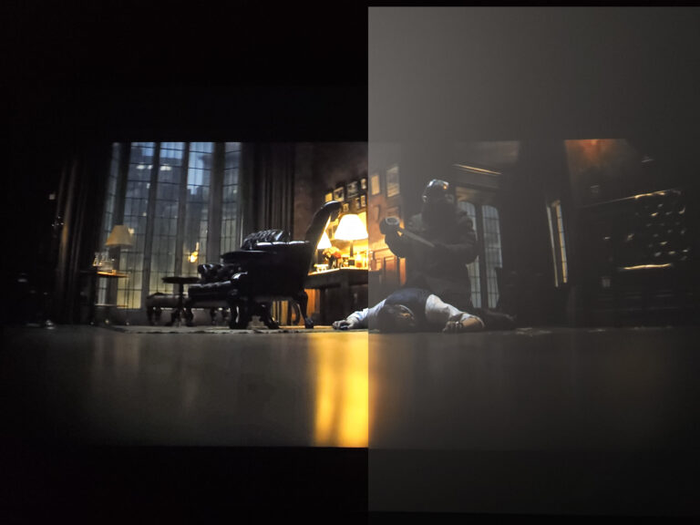 Ce chapitre devrait être entouré de couleurs bien visibles pour attirer votre attention parce que le contraste c'est la plus grande force de ce projecteur, c'est une véritable machine de guerre. Le contraste natif est absolument excellent. J'ai obtenu un taux de contraste de 3580:1 en mode standard (luminosité max) et le contraste le plus bas que j'ai observé c'est 2988:1 avec la luminosité au maximum. Le contraste c'est le point faible d'une grande majorité de projecteurs mais pas celui-ci. Dans cette gamme de prix, je pense que ce Formovie Edge doit se trouver dans le haut du tableau.