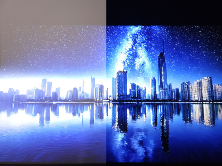 Le contraste (on/off) permet de mesurer l'écart entre le blanc et le noir. Cette mesure donne une indication sur la capacité d'un projecteur à produire un bon rendu dans les scènes sombres.