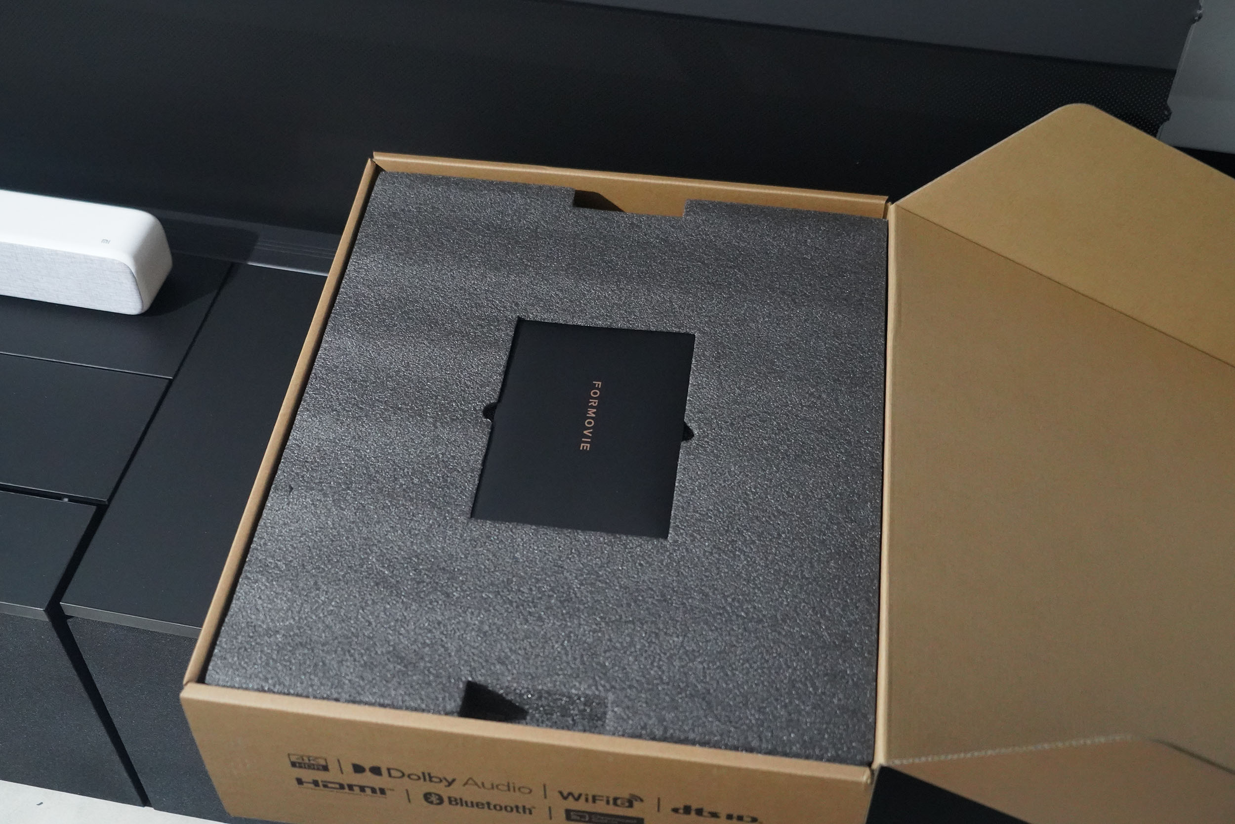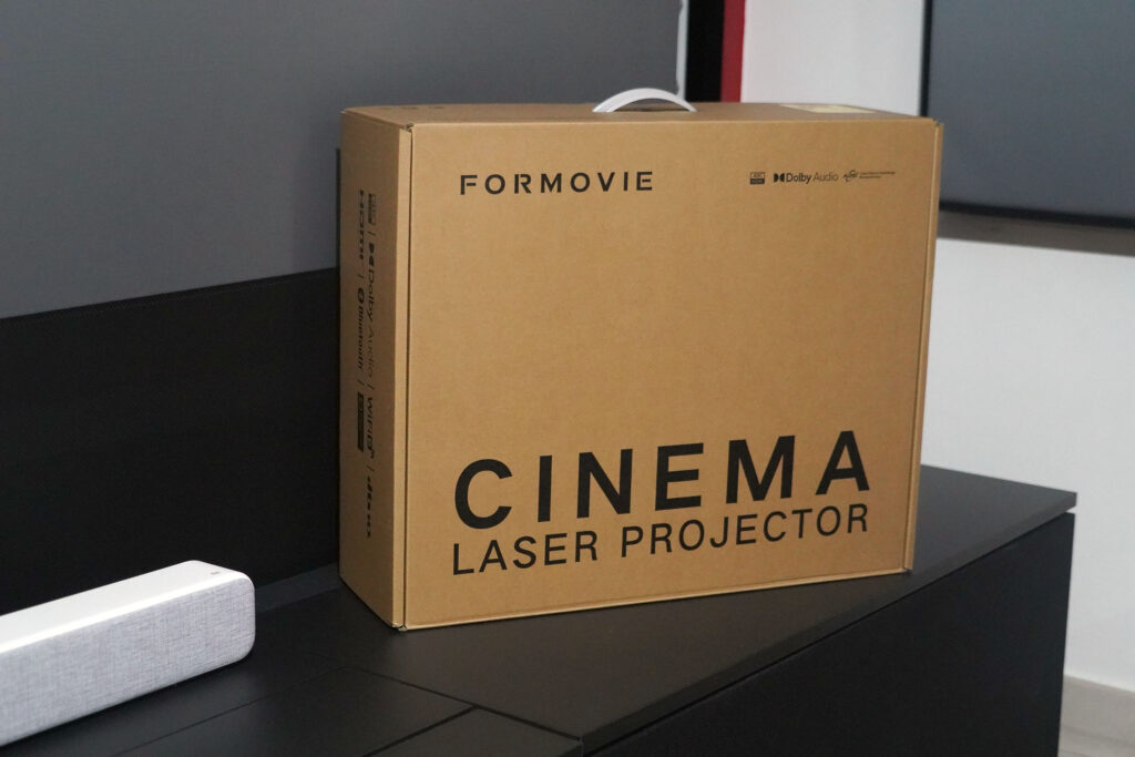 Les projecteurs à focale ultra-courte sont généralement des projecteurs haut de gamme assez cher, on en trouve moins souvent entre 1000 et 1500€. Le Formovie Edge vient de passer cette frontière de prix. Avec un contraste natif de 3000:1, il a un argument assez solide face à de nombreux autres projecteurs et l'intérêt ne s'arrête pas là. Avec 2100 lumens (en théorie), il est également assez lumineux pour être utilisé sur une grande taille d'écran. Il n'a certes pas la couverture des couleurs d'un Formovie Theater mais il coute nettement moins cher. On a donc ici une sorte de version allégée d'un modèle haut de gamme qui rentre dans une zone de prix où il faut le prendre en considération.Déballage