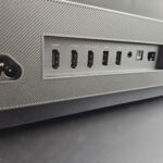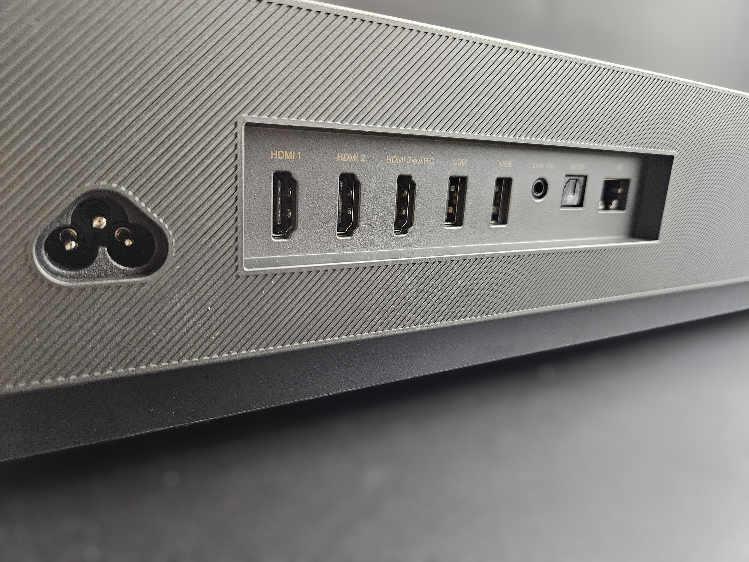 A l'arrière on retrouve une connectique classique mais généreuse avec 3 ports HDMI dont 1 en eARC, deux ports USB 2.0, une sortie jack, une sortie audio numérique type S/PDIF et un connecteur RJ45. Vous pourrez donc sans problème lui associer une autre source comme un lecteur Blu-ray avec un ampli ou un système d'enceintes.