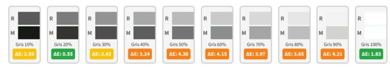 Ici aussi le delta E est trop élevé et toutes les gris virent vers le bleu.