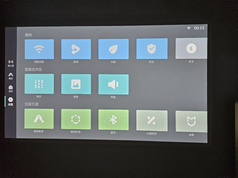 Le Formovie S5 tourne sous Fengmi OS et reprend la structure des réglages de tous les autres projecteurs utilisant le même système d'exploitation comme par exemple le Fengmi V10 ou le Xiaomi Laser Cinema 2. Vous pouvez accéder à ces paramètres de deux façons, soit par le menu paramètres de l'interface en chinois soit par le biais du bouton paramètres de la télécommande. La première possibilité n'aura d'effet que sur la partie chinoise du projecteur, la deuxième vous permettra de configurer l'image de la source HDMI que vous allez utiliser.
