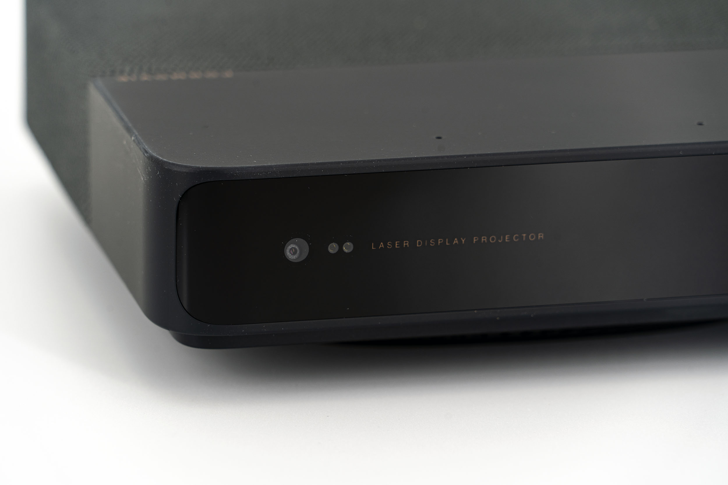 De l'autre côté de la façade avant on retrouve les capteurs qui permettent de détecter la distance de projection et adapter la taille de l'image ainsi que le focus pour obtenir une image toujours nette.