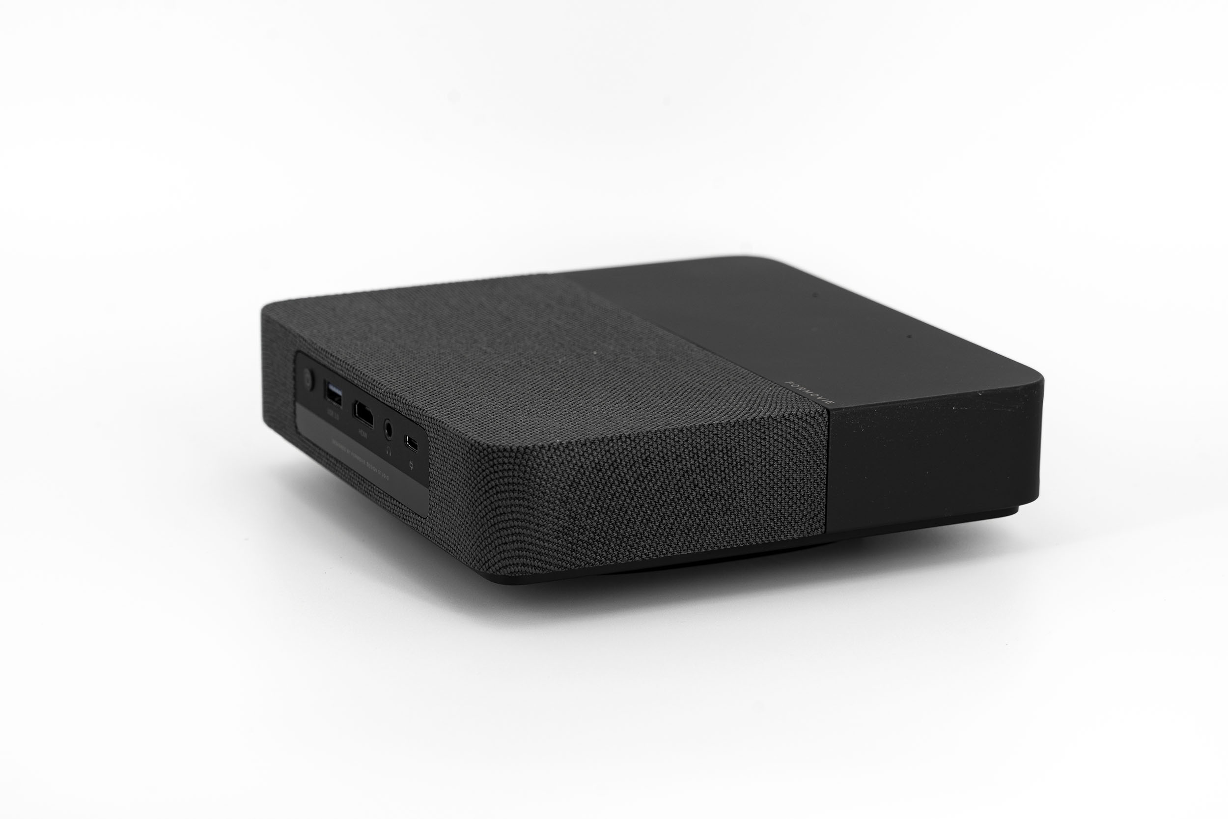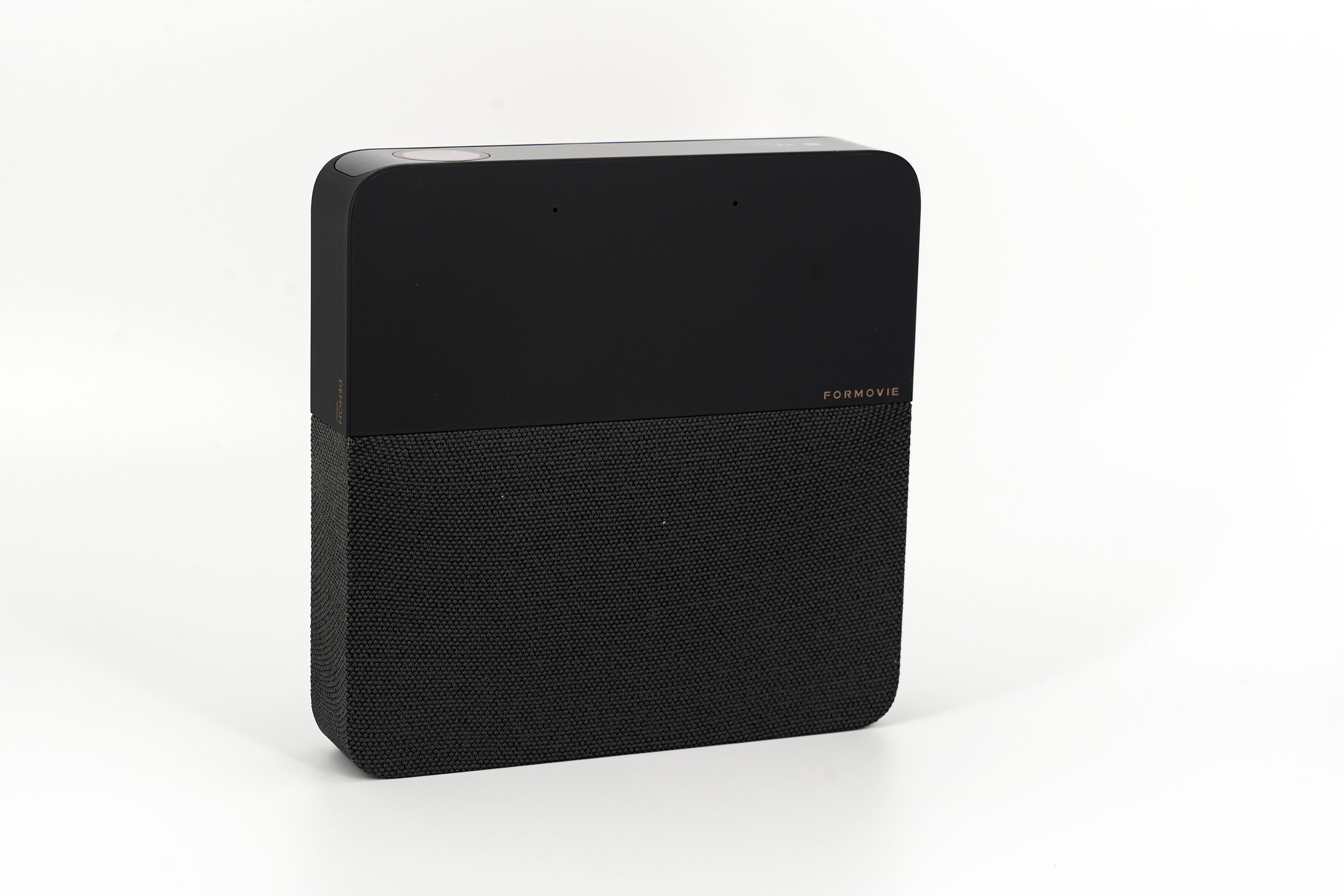 Il n'y a aucun bouton sur les côtés, le projecteur utilise deux types de matières, il y a d'abord un plastique noire pour la partie avant et l'arrière est recouvert d'un tissu pour lui donner un aspect un peu plus premium. Ce tissu n'a sans doute pas d'autres utilité car le son sort par le dessous du projecteur là où le tissue est souvent utilisé pour cacher les enceintes sur d'autres projecteurs. Formovie a choisi Denon pour ses enceintes et vous allez voir ou plus entendre ce que ça donne plus loin dans le test.