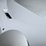 Le JMGO U2 a une forme très particulière, il est imposant mais sa conception pour diffuser le son le rend unique dans son genre. On retrouve une ouverture circulaire surmontée d'un plateau de chaque côté du projecteur, cet ouverture diffuse le son tout autour du projecteur. Ces plateaux ont l'air fragiles mais ils sont assez solides, ils ne sont pas amovibles et leur hauteur ne peut pas être adaptée. Le son est également diffusé par l'avant à partir de la zone inférieure du projecteur.