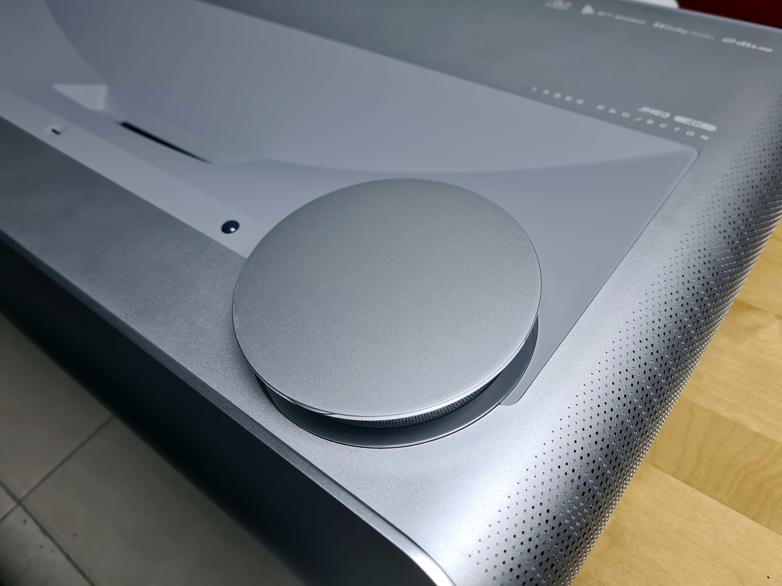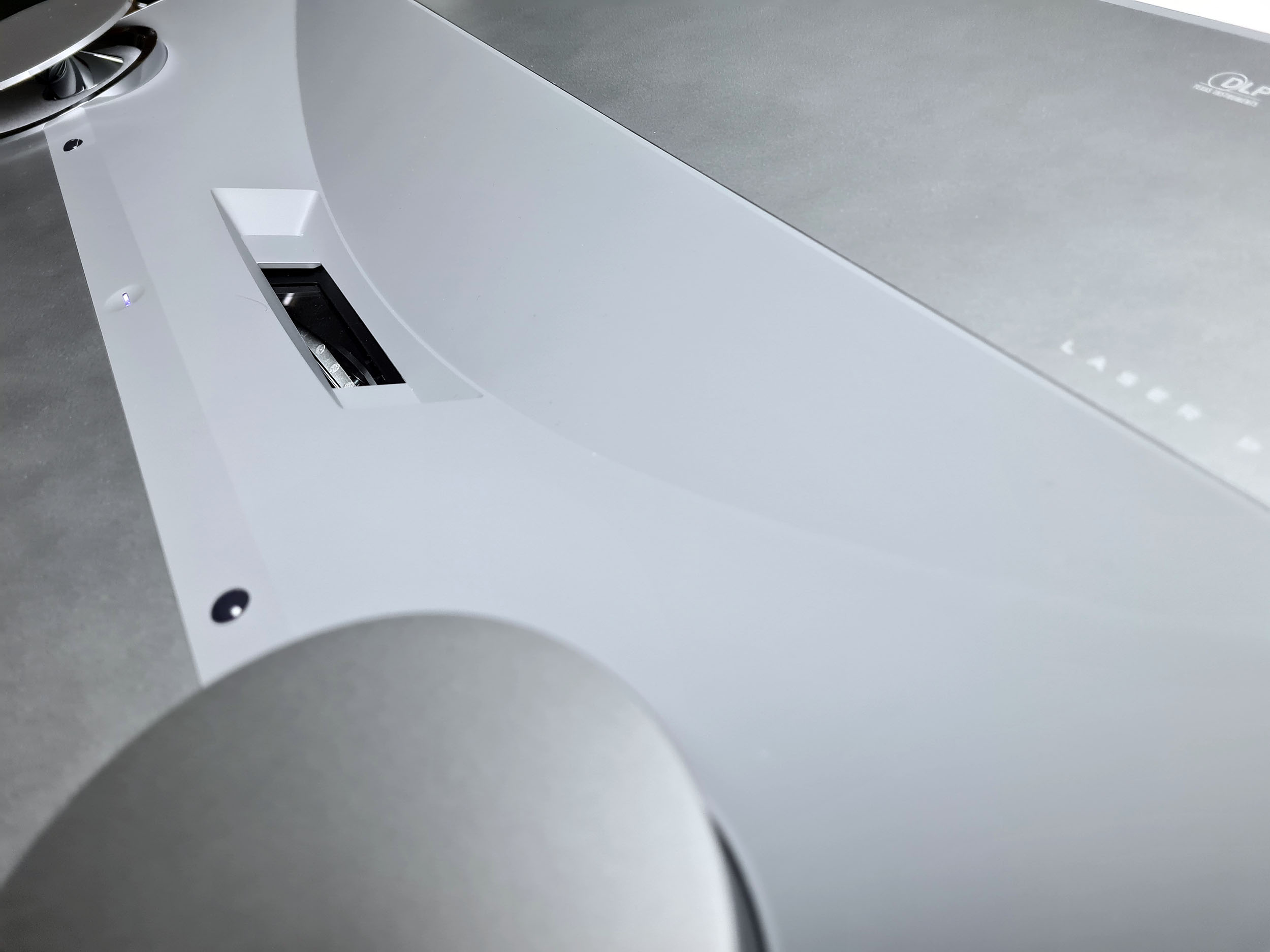 Le faisceau laser est projetée par une ouverture au milieu du projecteur. La distance entre votre mur de projection et cette ouverture va déterminer la taille de l'image. Des capteurs sont présents à proximité de cette ouverture pour détecter la présence d'une personne dans la zone de diffusion. Lorsque le projecteur détecte la présence d'une personne à proximité du faisceau, celui-ci se coupe automatiquement pour protéger vos yeux. Cette fonctionnalité est bien utile sauf qu'elle se déclenche parfois sans être à proximité du projecteur.