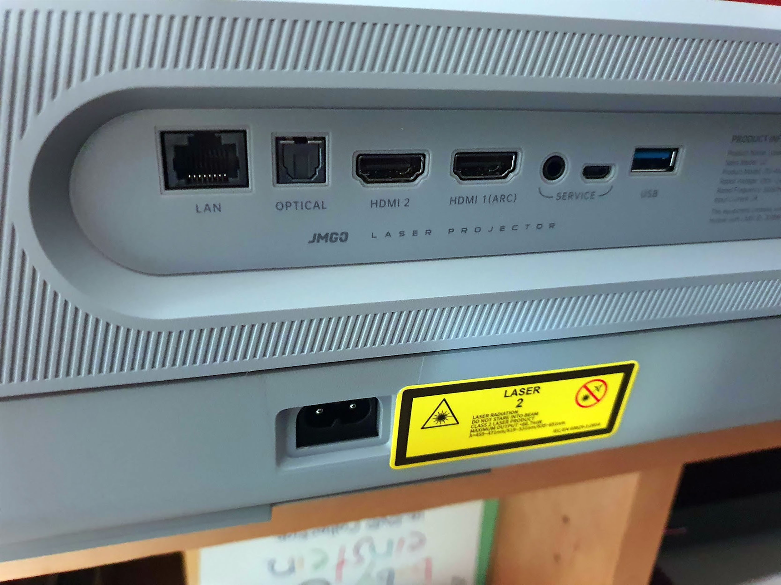 A l'arrière on retrouve un port Ethernet, une sortie audio numérique, un port HDMI 1 (ARC), un port HDMI 2 et un port USB 3.0. Un port USB 2 est également disponible sur le côté. La présence d'un port ethernet est une bonne chose car ce projecteur n'est pas très bon en wifi.