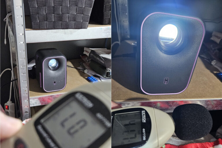 J'ai mesuré un peu plus de 41 décibels à proximité du projecteur et moins de 40 à distance. Les projecteurs LCD sont généralement plus bruyants que les équivalents en DLP, c'est ici de nouveau le cas mais ce NothingProjector limite la casse. Il émet un bruit audible lorsque vous êtes à proximité mais c'est loin d'être dérangeant. Dès que vous allez regarder un film, vous ne l'entendrez plus.