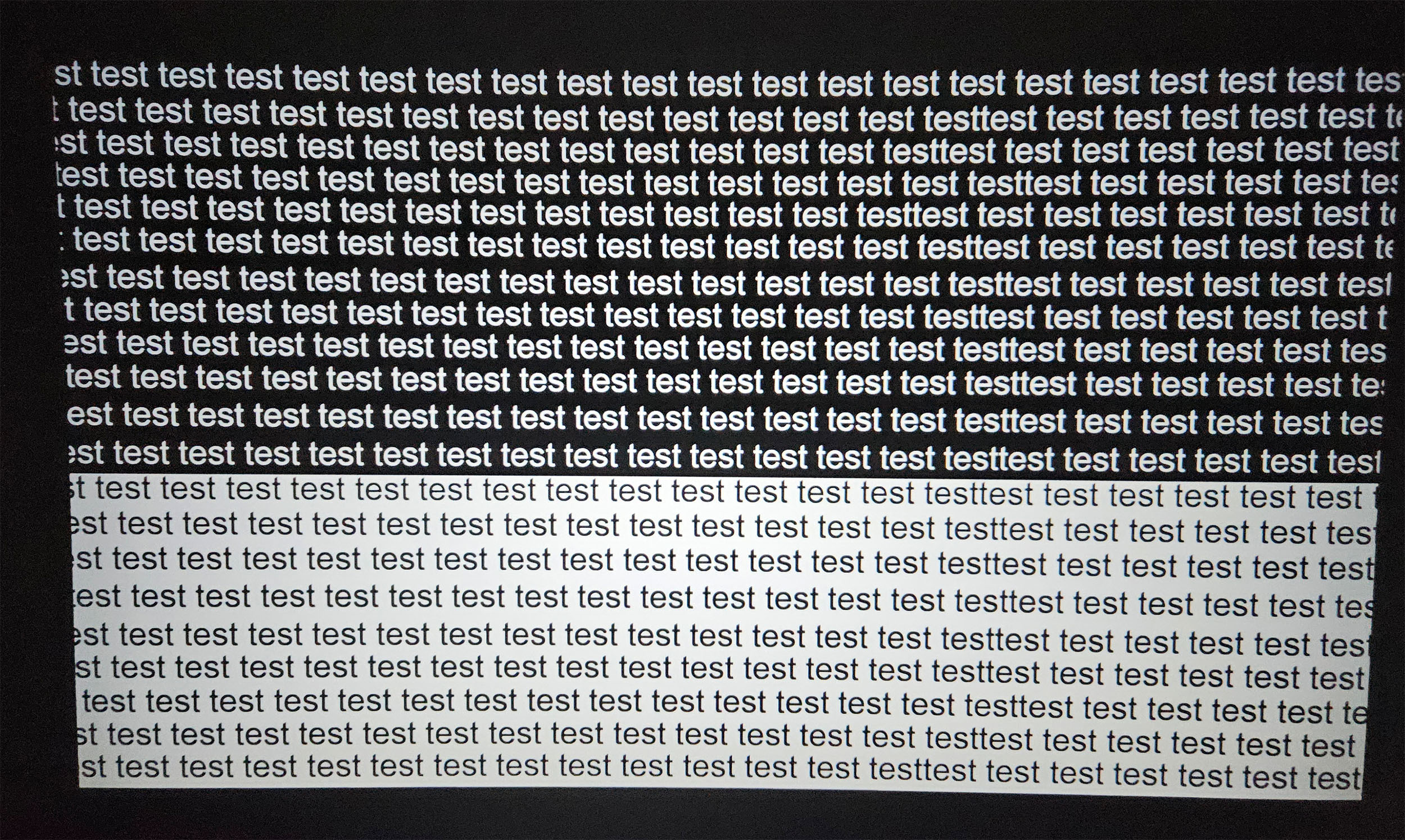 Je me suis dit qu'il serait intéressant de faire un test similaire avec du texte et j'ai vraiment été positivement surpris par le résultat parce que le texte est net de bord à bord, c'est très rare pour un projecteur de ce type. Le bloc optique semble donc être de meilleure qualité que la plupart des projecteurs d'entrée de gamme que l'on trouve sur des sites comme Aliexpress.