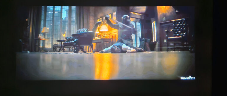 Ce projecteur a un rapport de projection de 1.2, cela veut dire que pour chaque mètre qui le sépare de l'écran, vous obtenez une image d'une largeur d'environ 86 cm. Il n'y a ici pas de bords comme avec un projecteur utilisant une puce DMD. NothingProjecteur indique que vous pouvez utiliser ce projecteur sur un écran de 120 pouces. Bien personne ne vous empechera de la faire, l'image sur un écran de 120 pouces sera beaucoup trop sombre. Si je table sur une luminosité de 250 lumens ansi, la taille recommandée pour ce type de luminosité se situe juste un peu au-dessus de 70 pouces et donc avec une distance de presque 2 mètres.