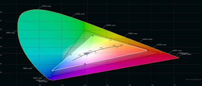 Pour rappel, le delta E doit être le plus proche de 3 et même en dessous pour obtenir une colorimétrie correcte. Avec ces résultats on se retrouve assez loin de la cible mais cela n'a rien d'étonnant pour un projecteur dans cette gamme de prix. Le mode "film" et le mode "jeux" sont ceux qui s'en sorte le mieux avec un blanc plus proche de la cible. Vous pouvez améliorer la fidélité du blanc et des gris en effectuant juste une petite manipulation au niveau de la température des couleurs. Le projecteur émet un peu trop de vert et de bleu, il faut donc diminuer le bleu entre 5 et 10 et diminuer le vert d'environ 5. Si l'image est toujours un peu froide, vous pouvez augmenter un peu le rouge. Ces chiffres vont varier en fonction de votre surface de projection mais vous allez toujours devoir réduire le bleu plus fortement que le vert et augmenter le rouge dans des proportions similaires au bleu. Avec le bon réglage, vous pourriez obtenir un blanc parfait. J'ai obtenu un blanc à 0.7 et un delta E de gris en dessous de 1 également.