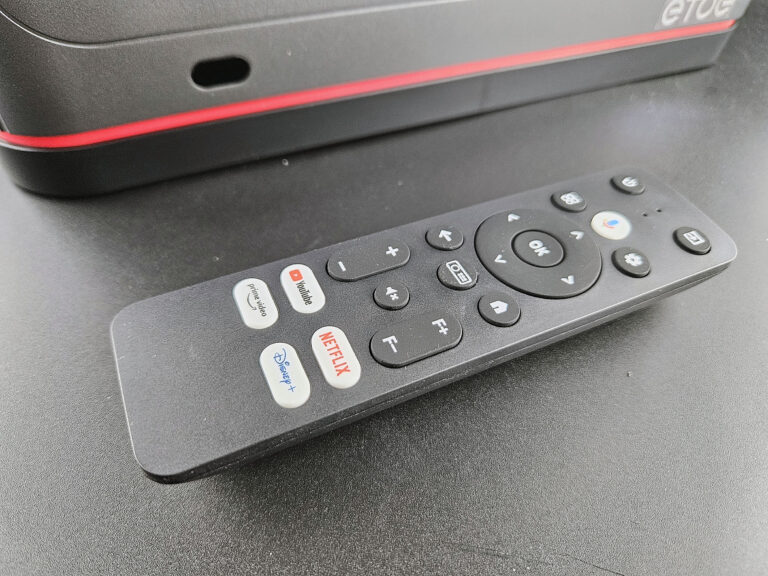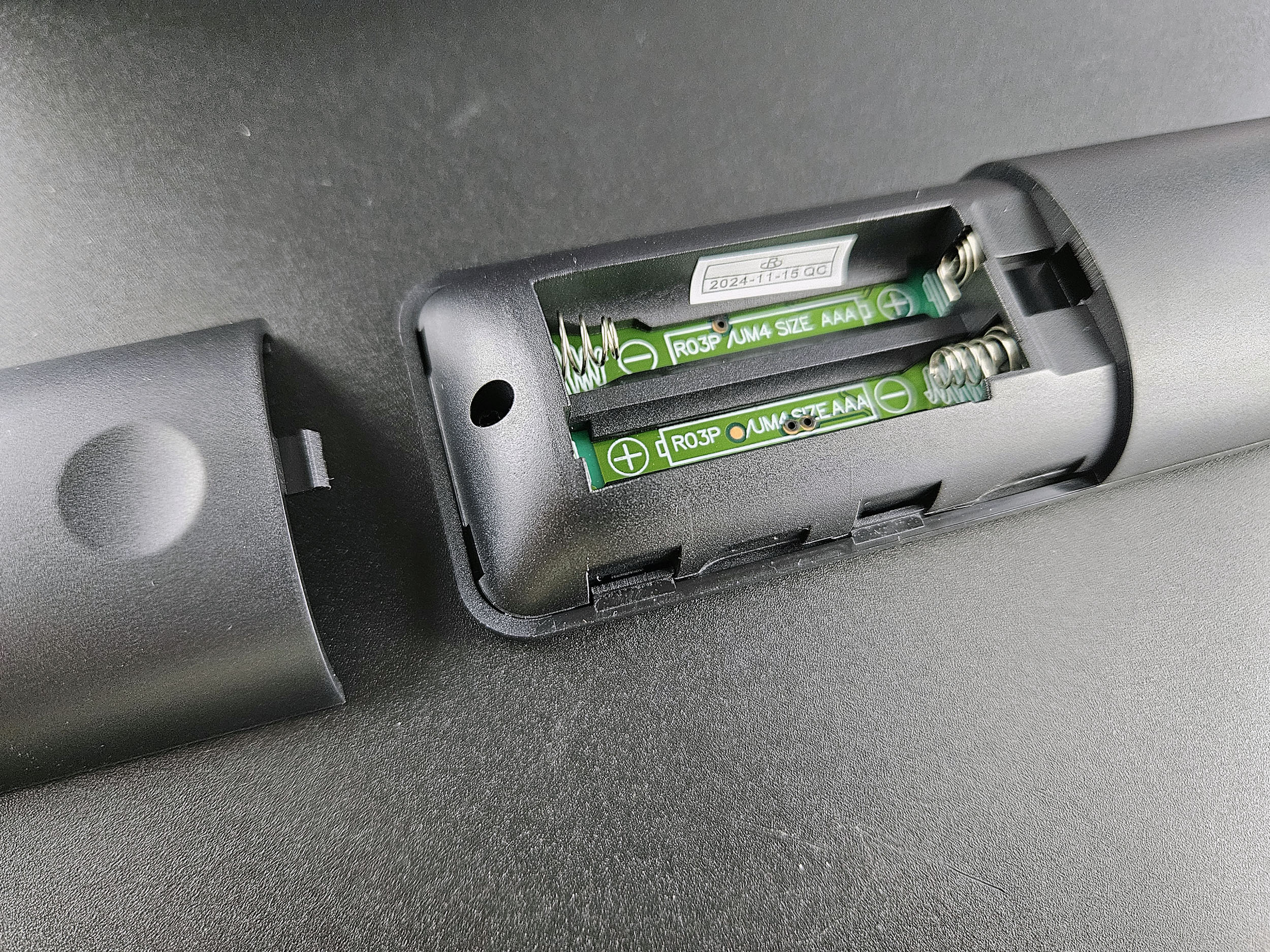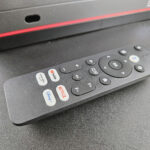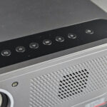 La télécommande est assez basique, elle n’a rien d’extraordinaire. Elle fonctionne en Bluetooth là où beaucoup de projecteurs dans cette gamme utilisent encore une télécommande infrarouge d’un autre âge. Les touches sont un peu dures, mais faciles à repérer, elle manque un peu de réactivité.