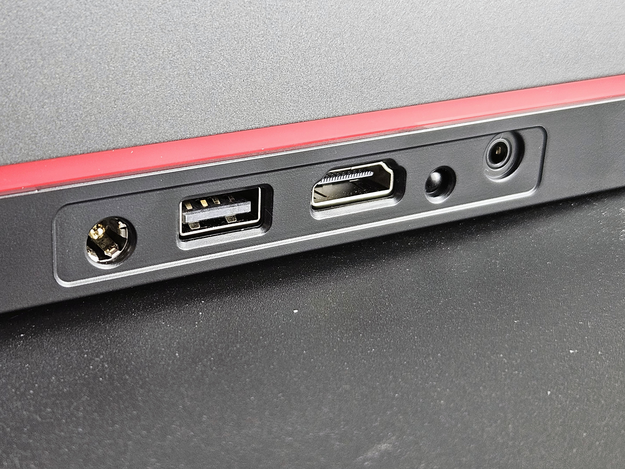 A l’arrière on retrouve une connectique assez limitée avec un port HDMI, un port USB et une sortie son.