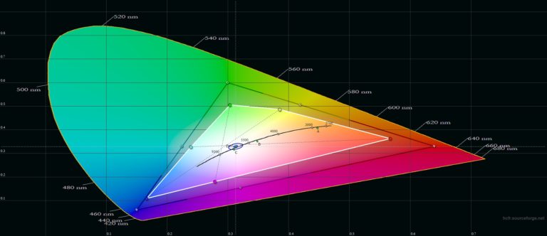 Le Wanbo T2R Max est un projecteur d'entrée de gamme, il ne faut donc pas s'attendre à des merveilles en matière de colorimétrie. Avec les réglages d'usine j'obtiens un dE de 8.82 en mode standard, j'ai essayé les autres modes mais aucun ne se distingue vraiment pour produire une bonne colorimétrie. En plus de la colorimétrie, ce projecteur a un déficit en matière de couverture de couleur, cela se voit au triangle correspondant aux mesures, il est beaucoup plus petit que le triangle de référence. Tout cela n'a donc pas l'air très positif mais il faut se rappeler que ce projecteur est un projecteur d'entrée de gamme et que donc il est presque normal d'obtenir ce genre de résultat.