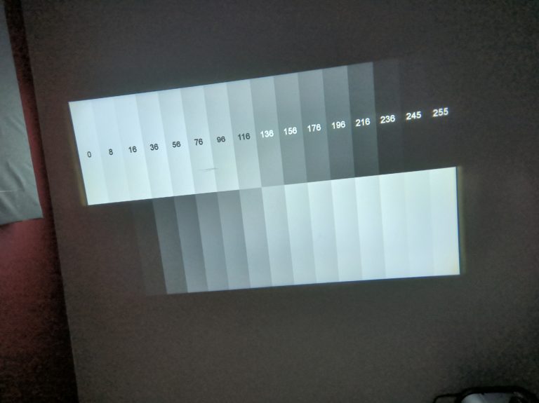 Le contraste de ce petit projecteur m'a étonné car je m'attendais à un contraste très faible comme sur la plupart des projecteurs de ce type mais j'ai quand même obtenu un contraste entre 400:1 et 600:1 en fonction des réglages. Il ne faut pas trop pousser la luminosité dans les paramètres et le contraste doit paradoxalement être diminué pour être amélioré.