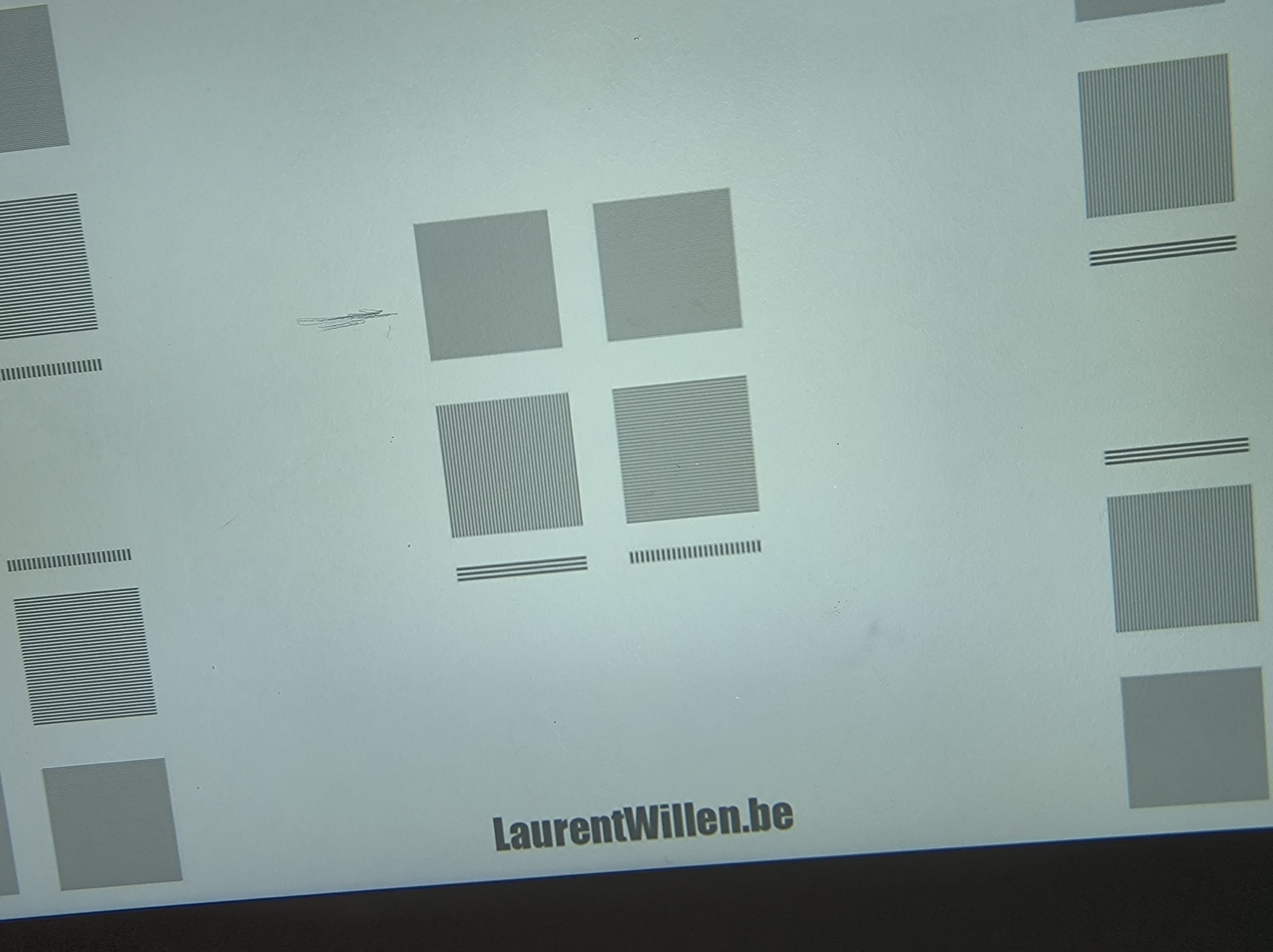 J'ai aussi été positivement surpris par la netteté de ce projecteur. Sur le Wanbo T6 Max il y avait un défaut optique qui ne permettait pas d'obtenir une netteté sur l'ensemble de l'image, Wanbo a corrigé ce problème sur ce projecteur car la netteté est bien uniforme sur l'ensemble de l'image et le réglage mécanique sur le dessus du projecteur fonctionne assez bien. Il y a une petite perte dans les coins mais rien de dramatique. Il faut par contre positionner le projecteur à au moins un mètre du mur car la distance minimale de mise au point doit se situer aux alentours d'un mètre.