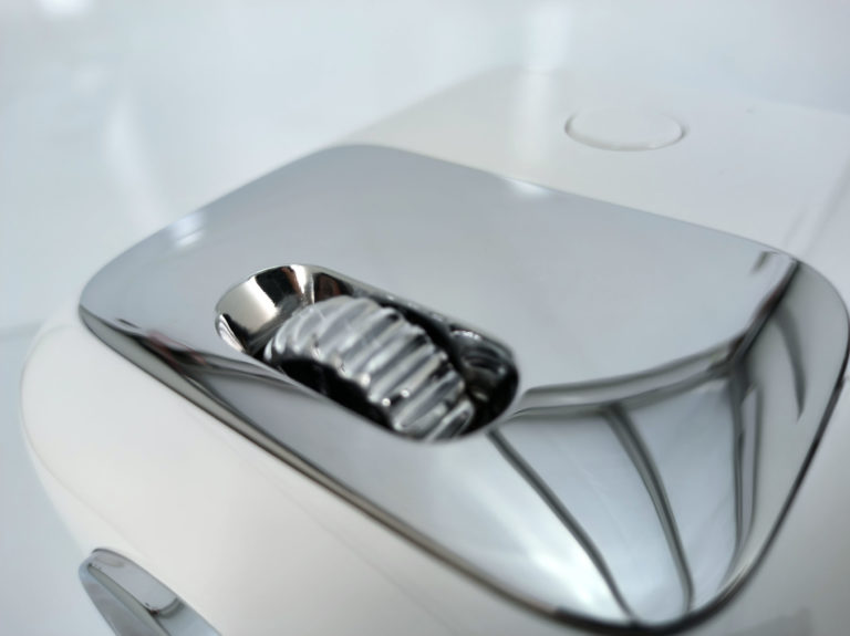La roulette au dessus du projecteur permet de faire la mise au point de l'image manuellement, cette roulette est immense par rapport aux autres roulettes de ce type sur d'autres projecteurs mais elle apporte sa contribution à l'esthétique du projecteur.