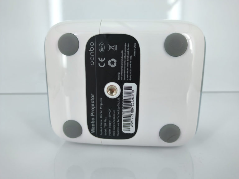 En dessous du projecteur on retrouve 4 pieds en caoutchouc qui permettent d'amortir un peu les vibrations émises par le projecteur et vous pouvez également utiliser un trépied photo pour le positionner où vous voulez.