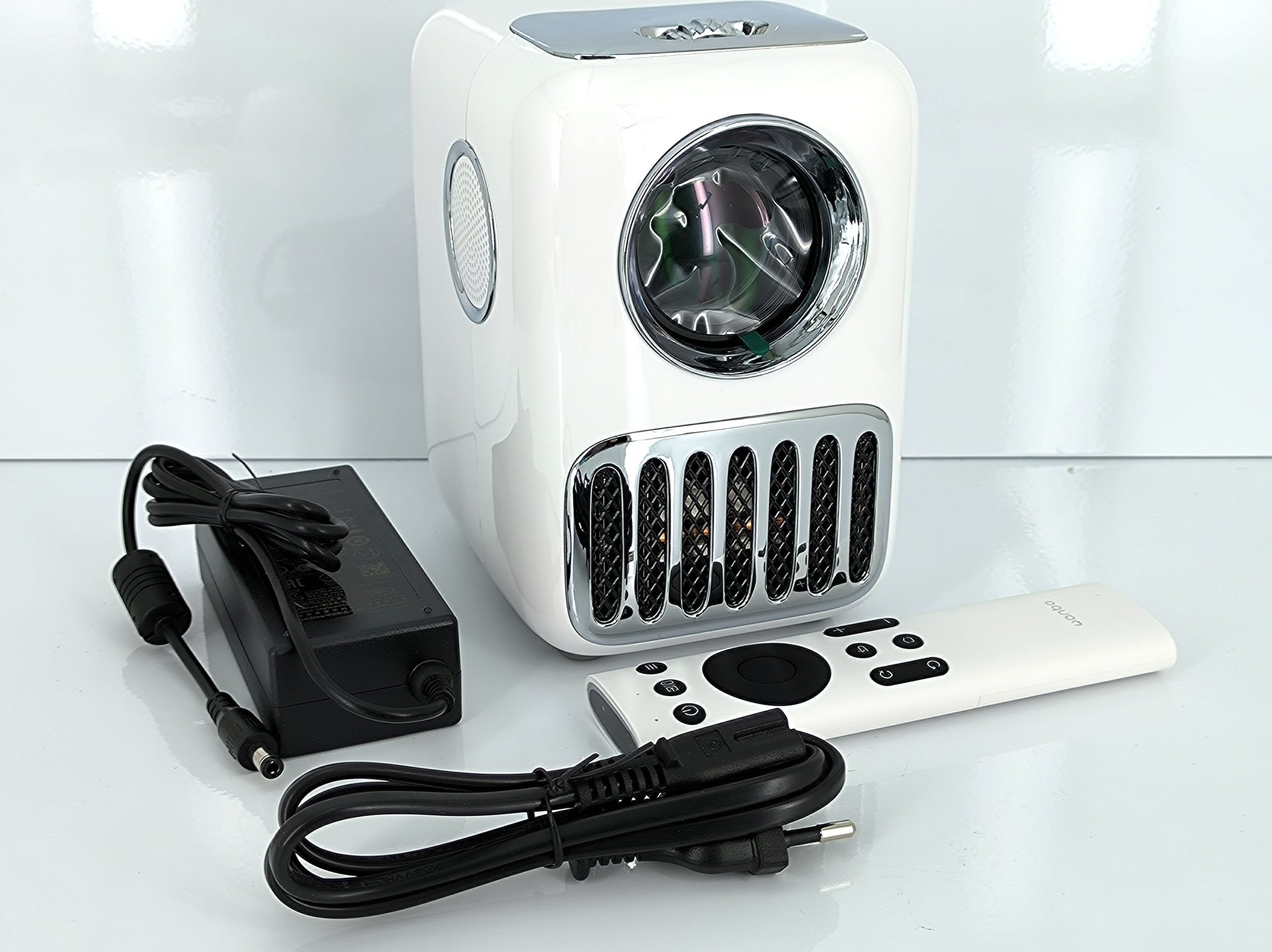 Le Wanbo T2R Max a un design un peu rétro en prenant des codes issus de l'univers automobile avec ces deux calandres chromées et son grillage métallique, la roue de mise au point au dessus du rétro suit un peu le même principe. Le Wanbo T2R Max est plus petit que le Wanbo T6 Max, il pourra donc être plus facilement transporté. Je trouve qu'aussi bien le format que l'esthétique sont assez réussis, le projecteur a un style moins massif et brutal que le Wanbo T6 Max.