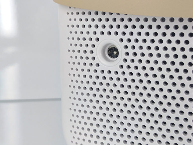 Le bas du projecteur est dominé par une très grande grille alvéolée qui permet d'évacuer la chaleur du projecteur. Cette grille se marie assez bien avec le design du projecteur mais elle aurait sans doute du être placée à l'arrière car une grosse partie de la chaleur du projecteur est évacuée par l'avant. Si vous placez le projecteur derrière vous, cela vous fera donc un petit chauffage d'appoint. J'ai mesuré la température à la sortie, j'ai obtenu 39°C et j'imagine que cela risque d'influencer le placement du projecteur car recevoir un vent chaud de 39°C à l'arrière de la tête n'est pas très agréable.