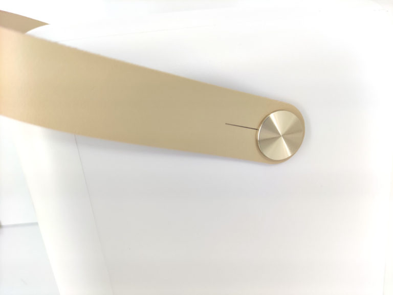 Sur les côtés on retrouve la lanière de transport en cuir.