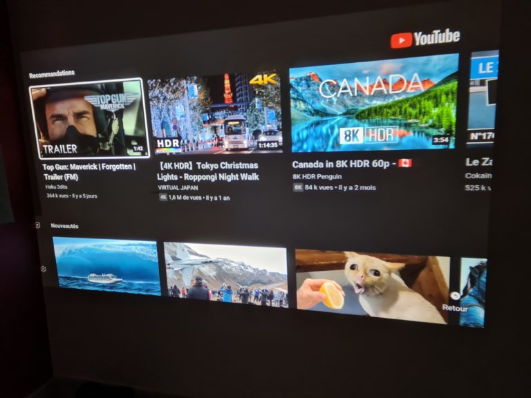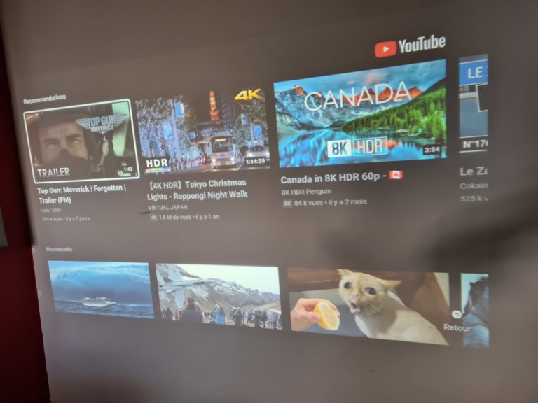 La netteté est partiellement bonne, il y a malheureusement un déséquilibre optique qui ne permet pas d'avoir toute l'image dans le même niveau de netteté, il faut donc un peu jouer avec le focus et l'orientation du projecteur. Cela se voit surtout sur l'écran d'accueil d'Android TV, cela se voit un peu moins dans les films.